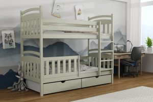 Łóżko piętrowe Adaś z litego drewna sosnowego łączy minimalistyczny design ze stabilną konstrukcją, bezpiecznymi barierkami i szeroką drabinką, oszczędzając miejsce w pokoju i zapewniając wygodny sen dwójce dzieci.