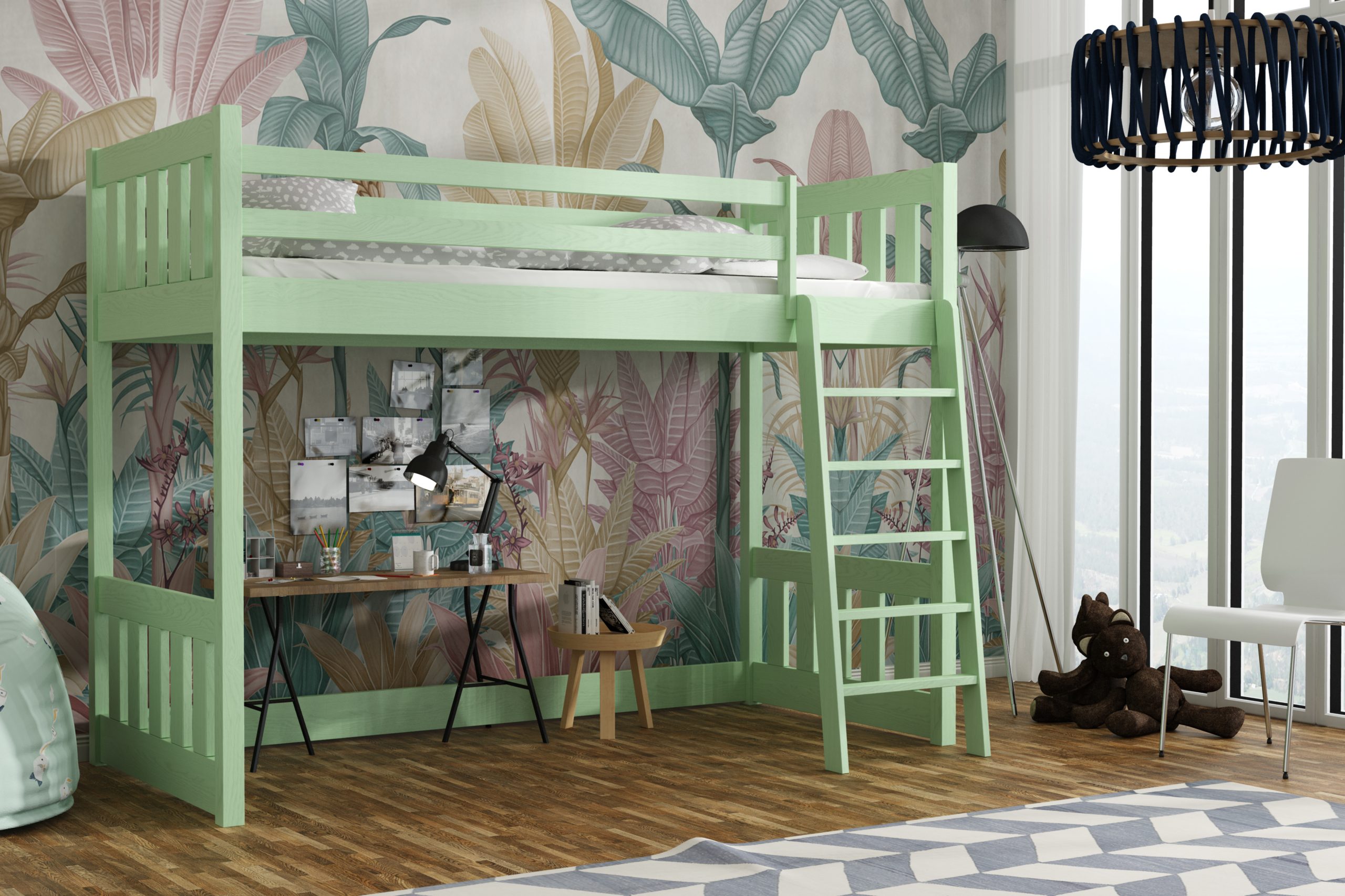 Łóżko na antresoli Alvin łączy skandynawski minimalizm z wytrzymałą konstrukcją z litej sosny, oferując wygodne miejsce do spania i dodatkową przestrzeń pod antresolą do zabawy lub przechowywania. Dostępne w 11 rozmiarach i 12 kolorach, łatwo dopasujesz je do każdego pokoju, nawet przy ograniczonej przestrzeni.