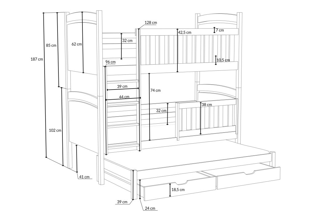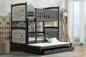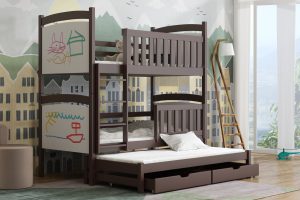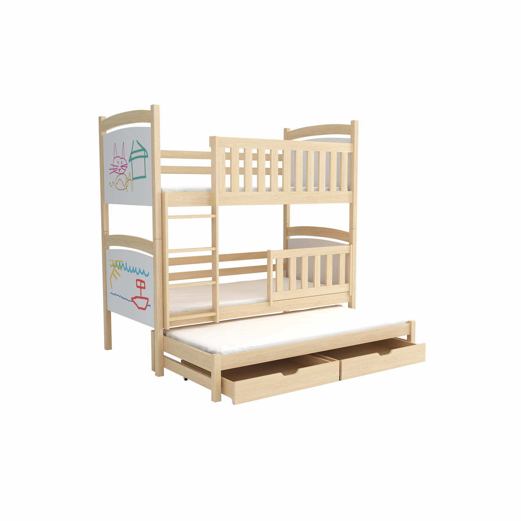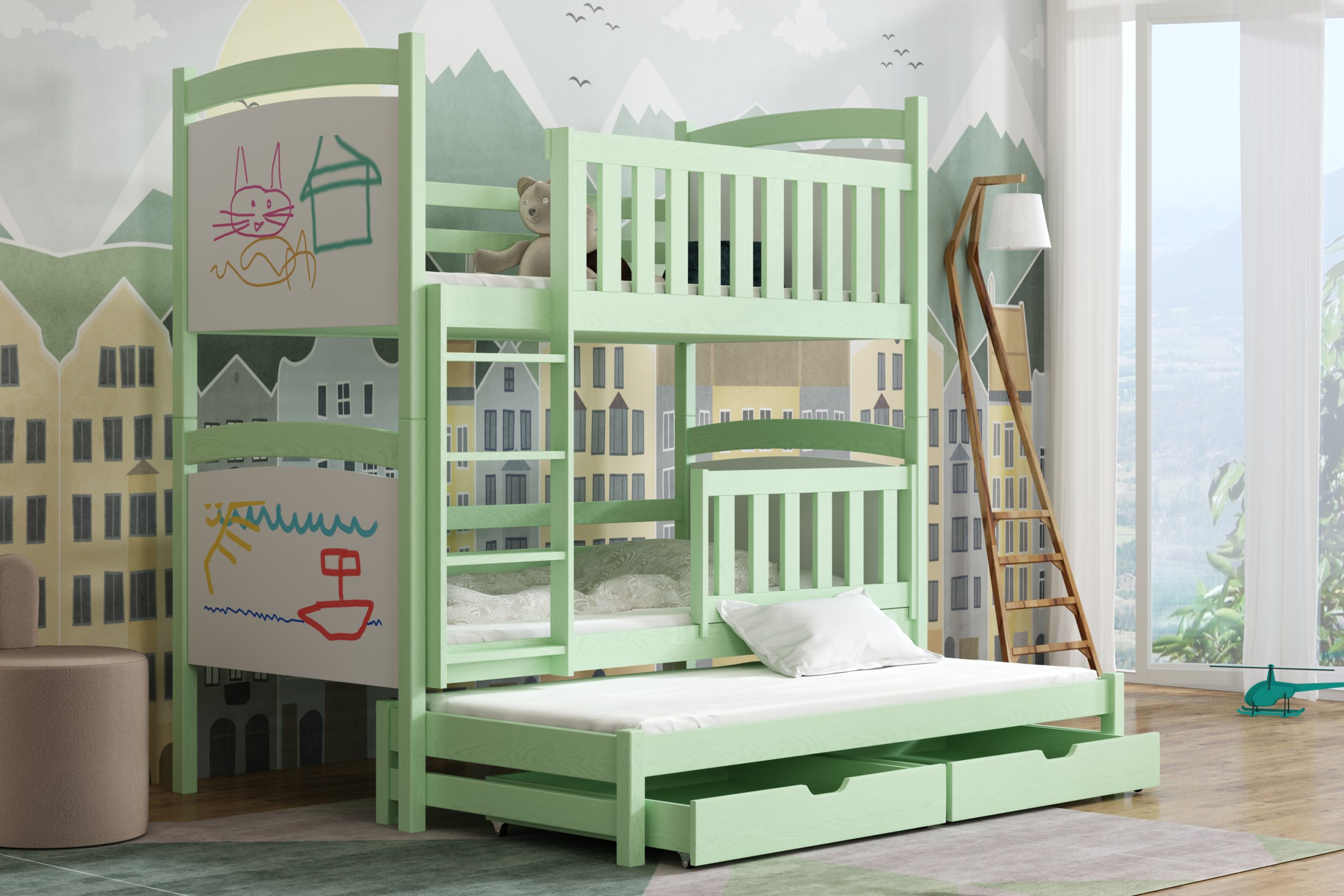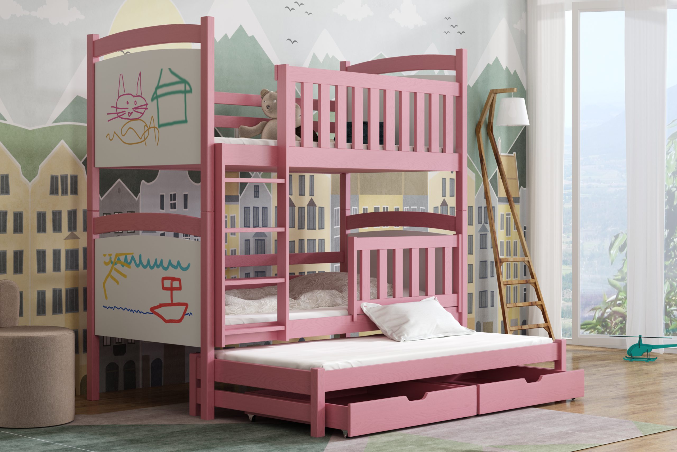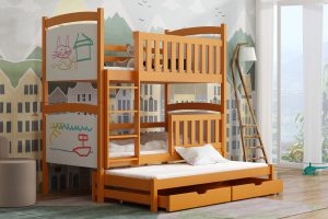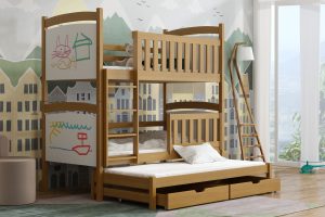 Łóżko piętrowe Aria to solidna konstrukcja z litego drewna sosnowego dostępna w 12 kolorach i 9 rozmiarach, łącząca naturalny, elegancki wygląd z praktycznymi opcjami – wyborem szuflad i barierek.