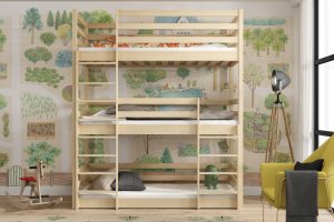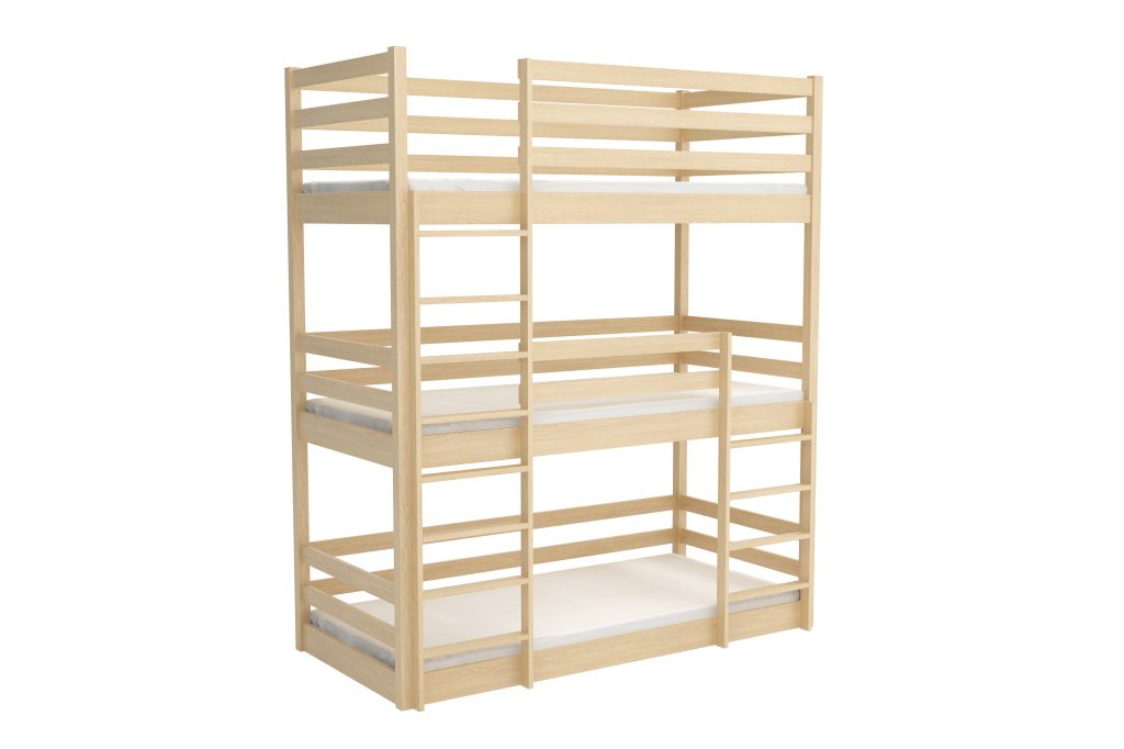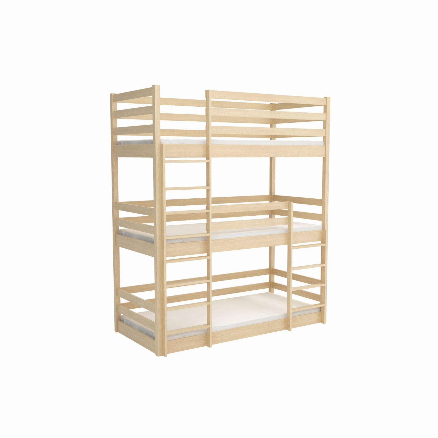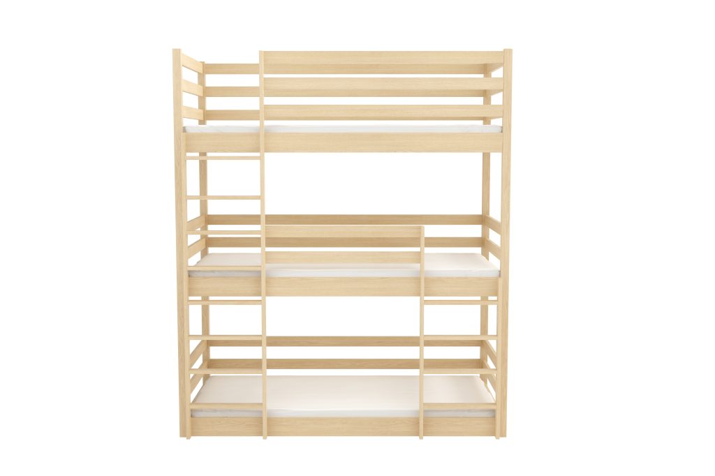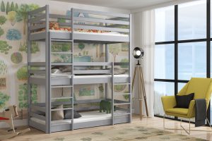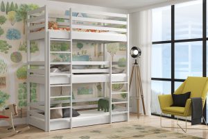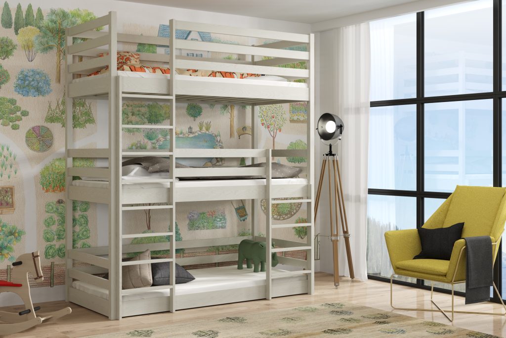 Potrójne łóżko piętrowe Arizona to idealne rozwiązanie dla trójki dzieci, łączące oszczędność miejsca, funkcjonalność i minimalistyczny design.