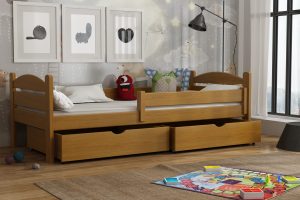 Łóżko pojedyncze Ela to solidny, minimalistyczny mebel z litego drewna, zapewniający dziecku zdrowy i bezpieczny sen oraz ponadczasową estetykę dopasowaną do każdego wnętrza.