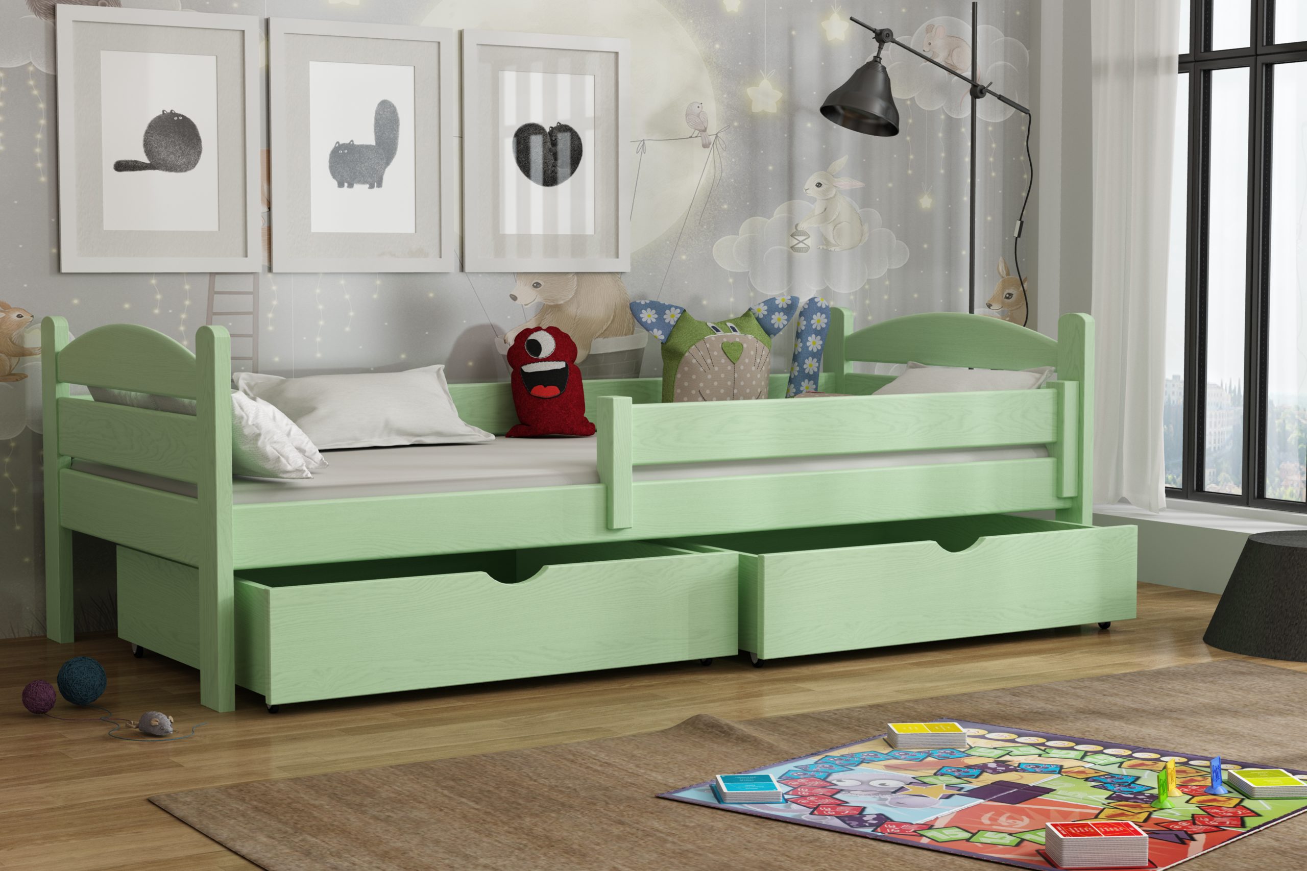 Łóżko Ela wykonano z najwyższej jakości drewna sosnowego, które pokryto bezpiecznym, ekologicznym lakierem wodnym, przyjaznym nawet dla alergików. Wytrzymałość konstrukcji sięga 140 kg, co czyni je niezwykle trwałym rozwiązaniem na wiele lat. Model dostępny jest w 11 rozmiarach i 12 kolorach, z możliwością wyboru dodatkowych szuflad, wysuwanego łóżka oraz materaca. Należy pamiętać, że biały kolor może z czasem ulegać przebarwieniom pod wpływem intensywnego nasłonecznienia.