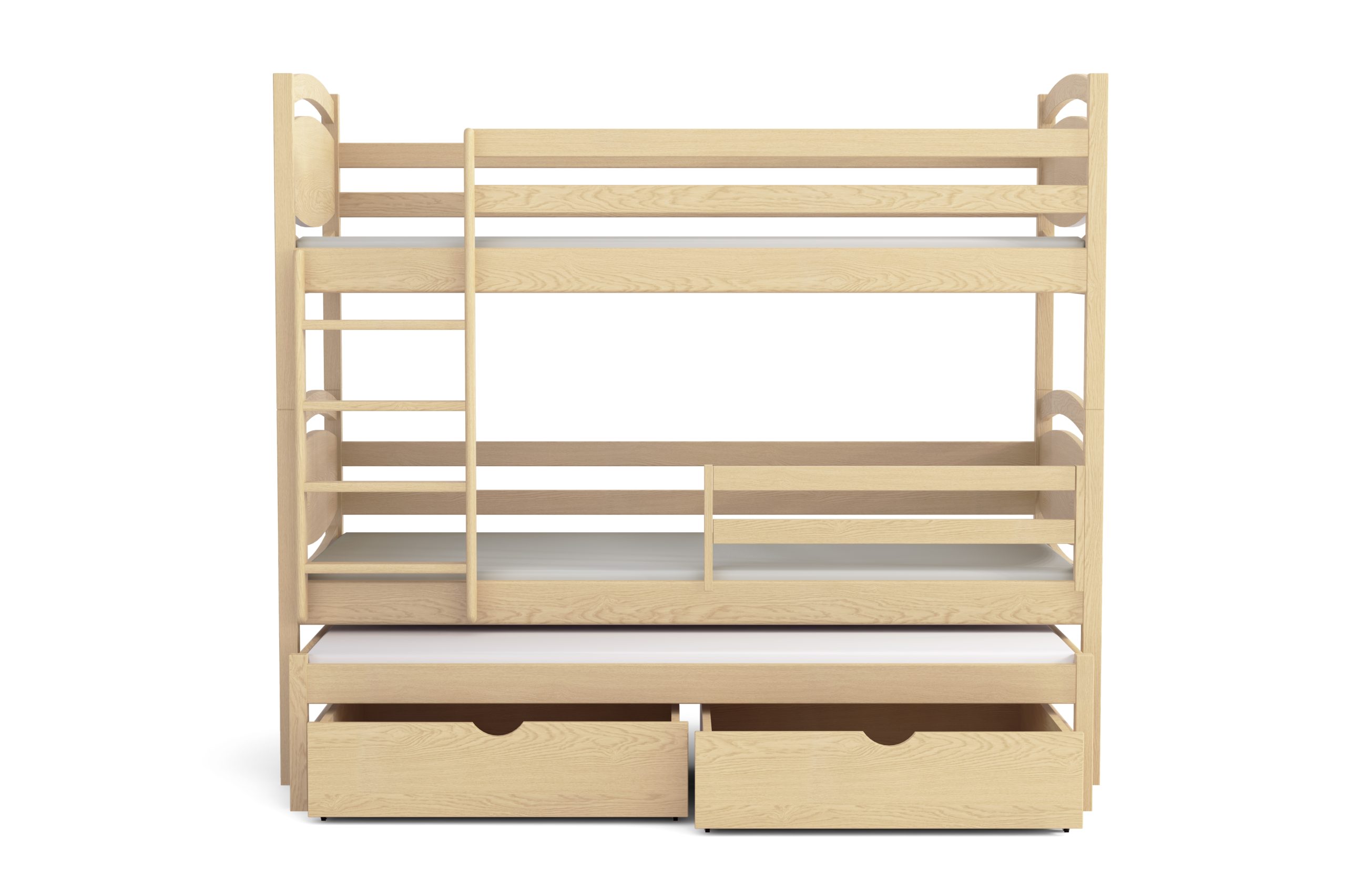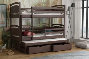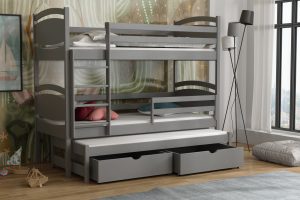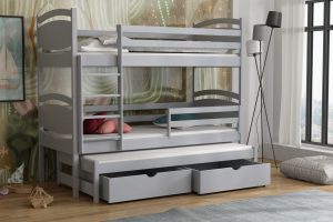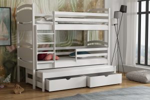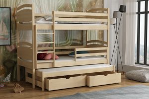 Praktyczne opcje, takie jak pojemne szuflady pod dolnym łóżkiem czy możliwość umieszczenia zabezpieczających barierek po wybranej stronie, pozwalają skomponować mebel pod kątem komfortu i bezpieczeństwa. Solidny stelaż oraz barierki zapewniają spokojny sen, a dodatkowe elementy dostosujesz do indywidualnych wymagań swojej rodziny. Dzięki temu łóżko Emma staje się nie tylko funkcjonalnym elementem wyposażenia, ale również wyjątkowym akcentem, który podkreśli charakter pokoju dziecięcego.