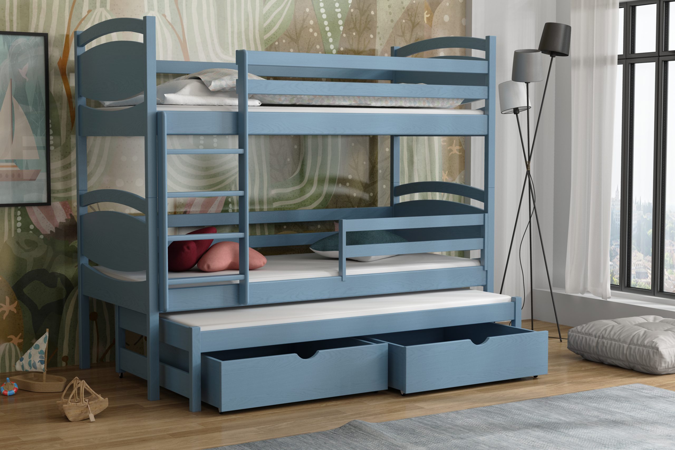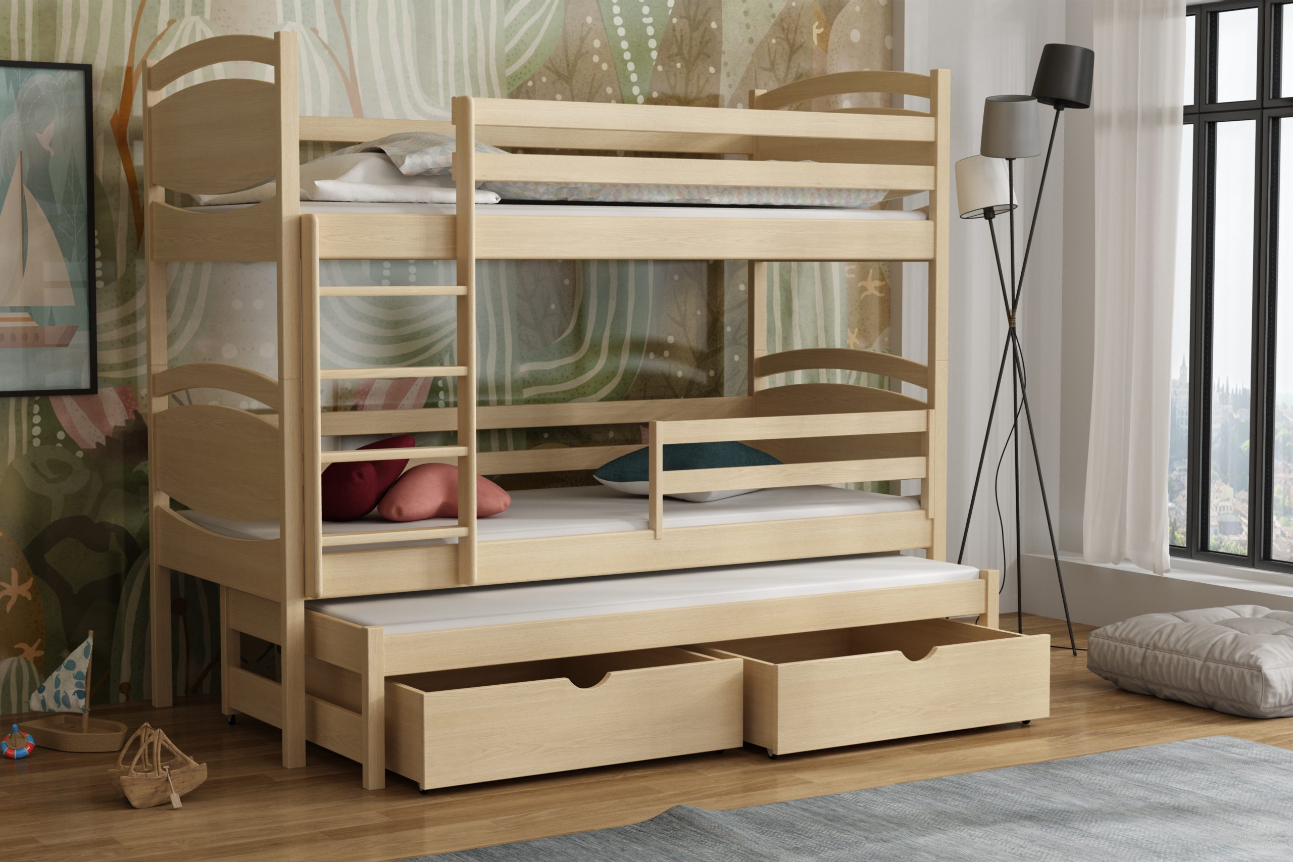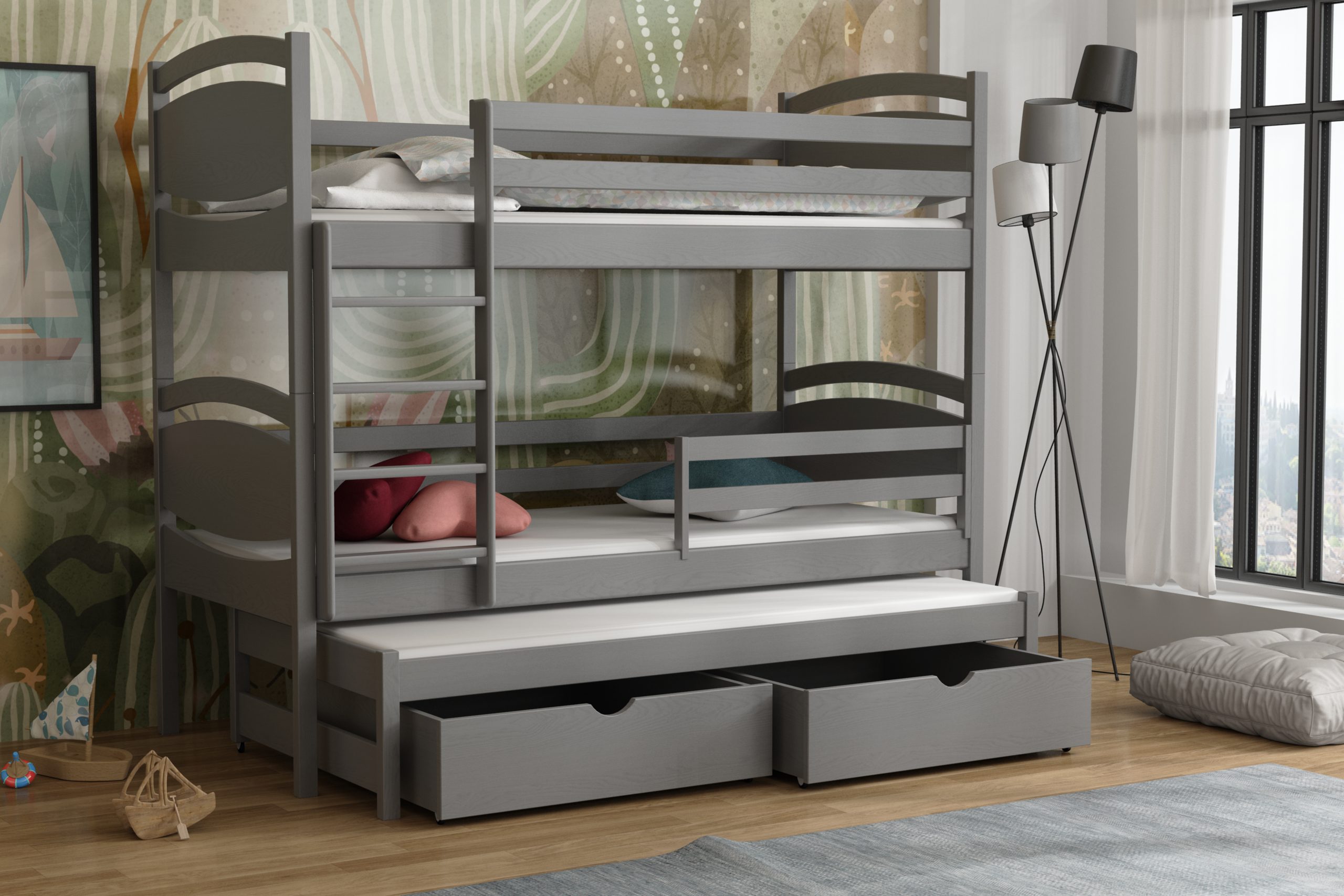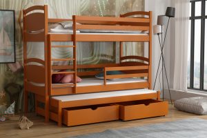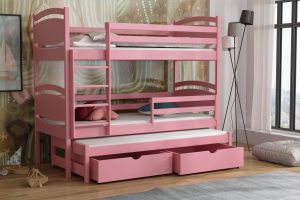 Łóżko piętrowe Emma to połączenie solidnej, sosnowej konstrukcji z eleganckim designem, dostępne w 12 kolorach i 9 rozmiarach, z opcją szuflad i barierek dla maksymalnej funkcjonalności i bezpieczeństwa.