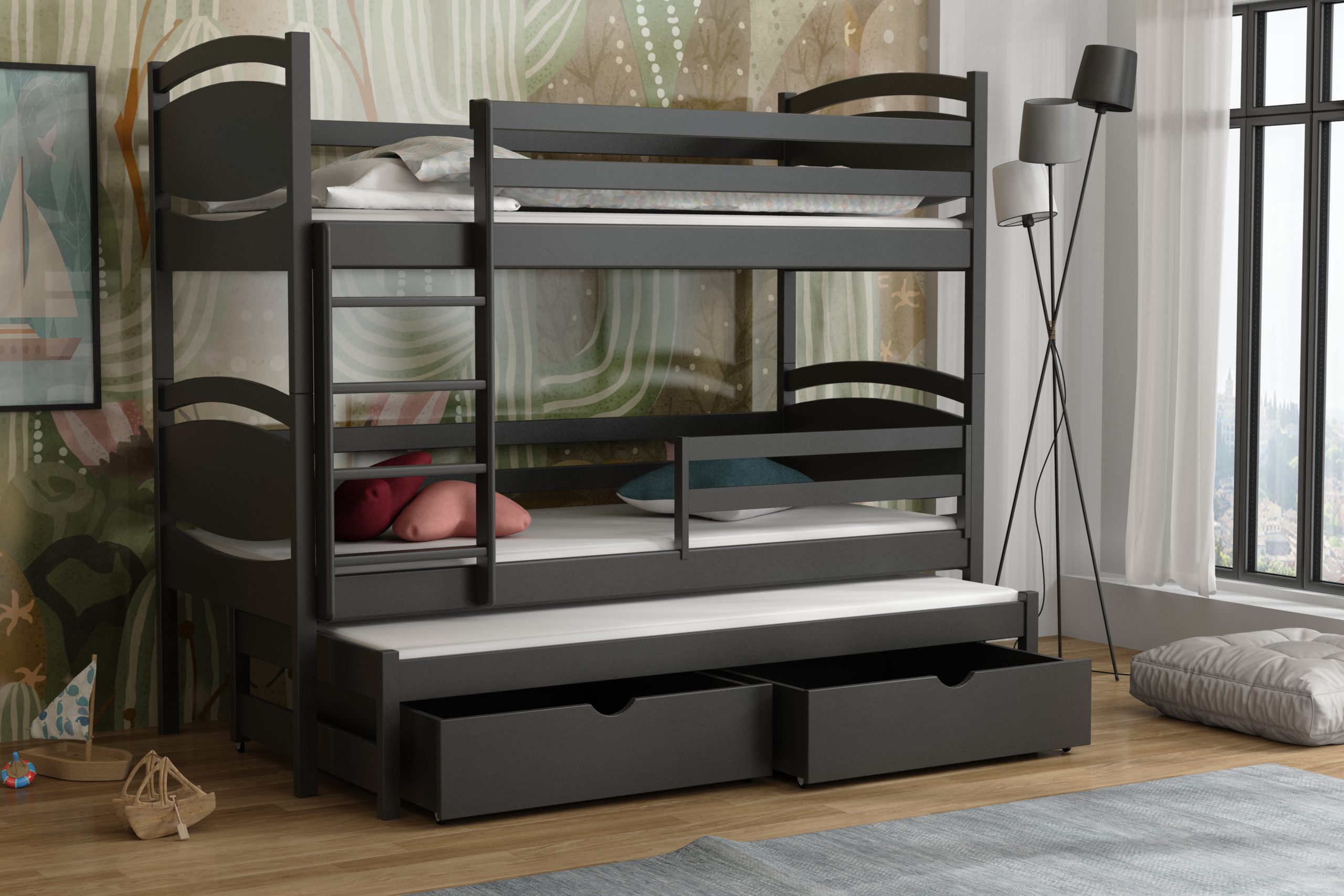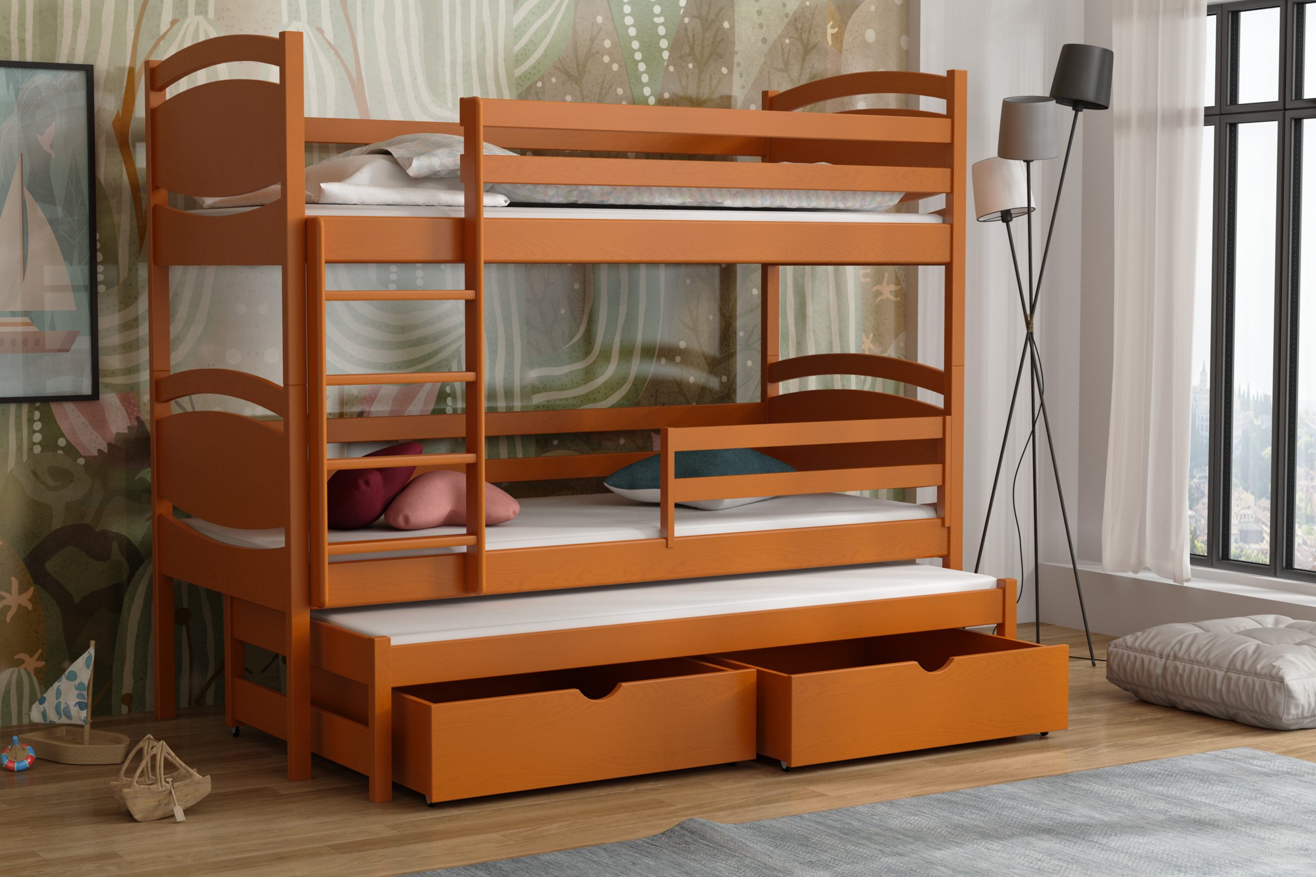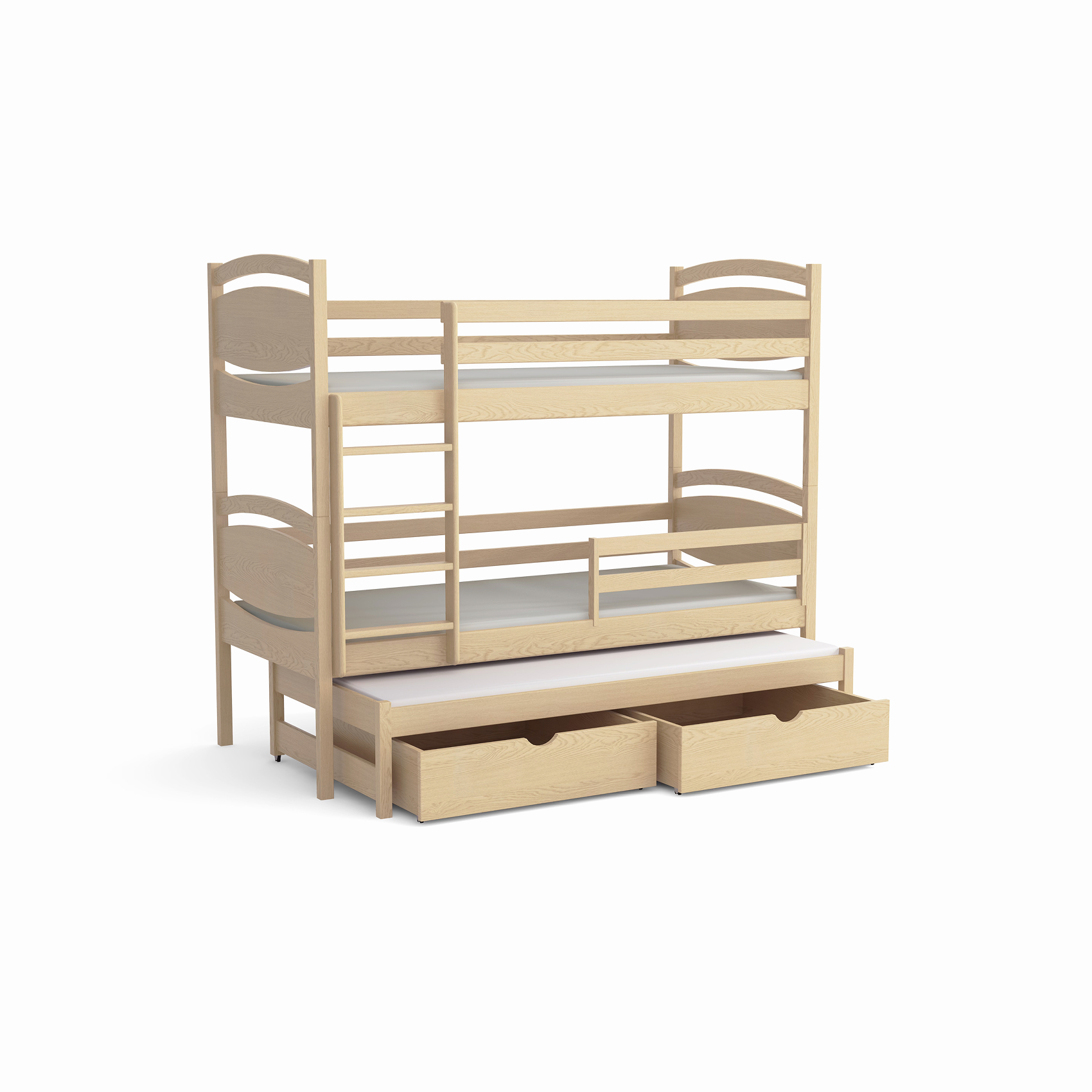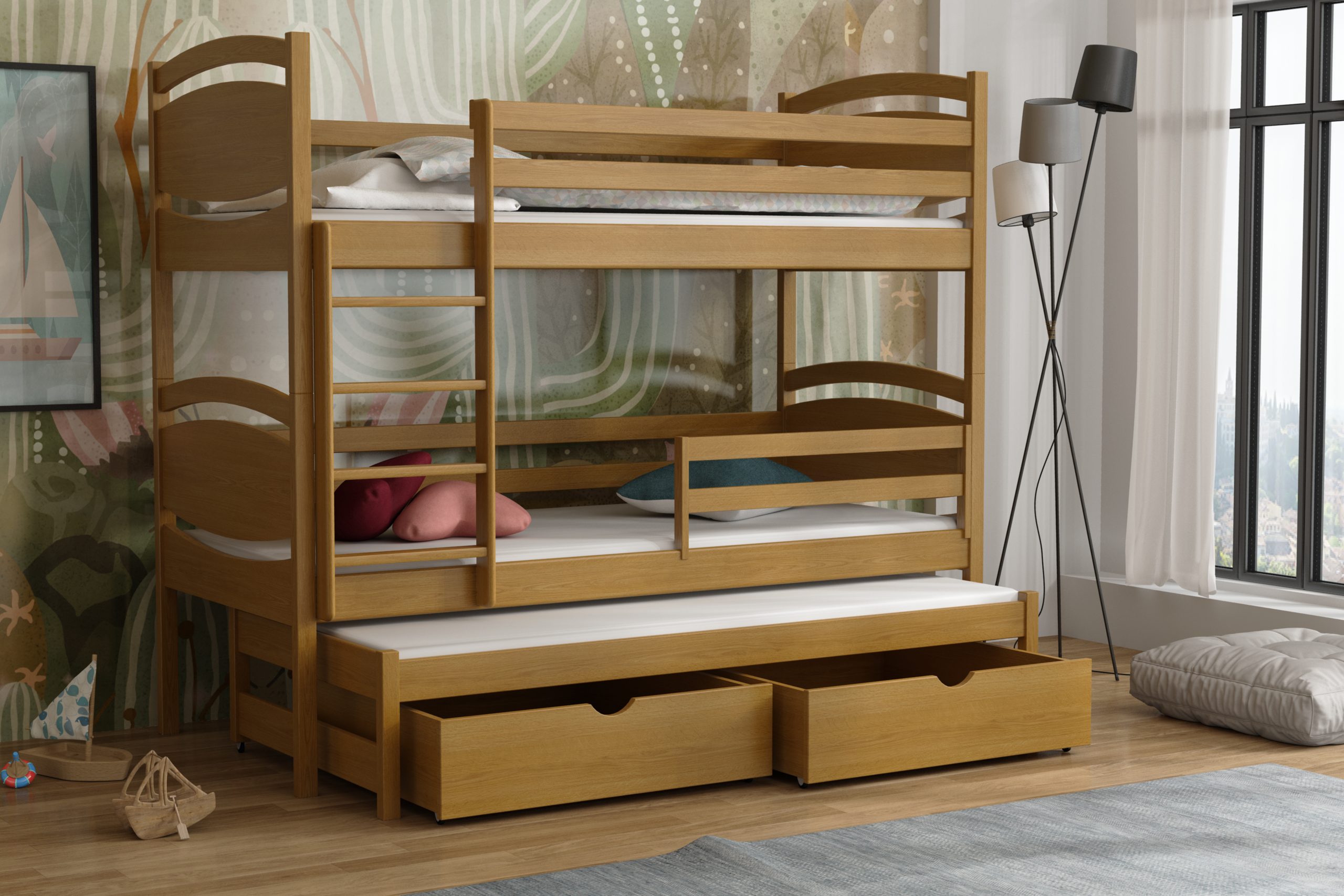 Łóżko piętrowe Emma to połączenie solidnej, sosnowej konstrukcji z eleganckim designem, dostępne w 12 kolorach i 9 rozmiarach, z opcją szuflad i barierek dla maksymalnej funkcjonalności i bezpieczeństwa.