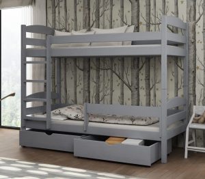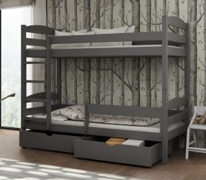 Łóżeczko piętrowe Kajtek to minimalistyczne i funkcjonalne rozwiązanie, które zapewnia dzieciom bezpieczny sen, przestrzeń do zabawy i doskonale wpisuje się w chłopięcy pokój.