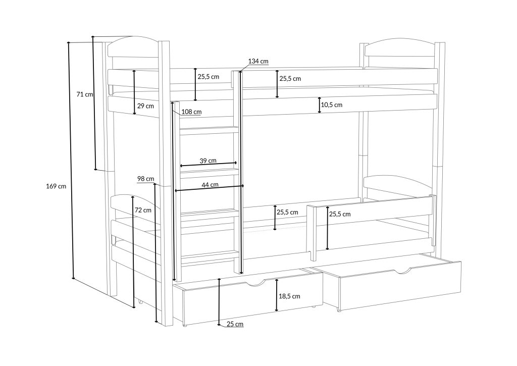 - Przeznaczenie: funkcjonalne łóżko piętrowe dla rodzeństwa – idealne do małych i średnich pokoi dziecięcych