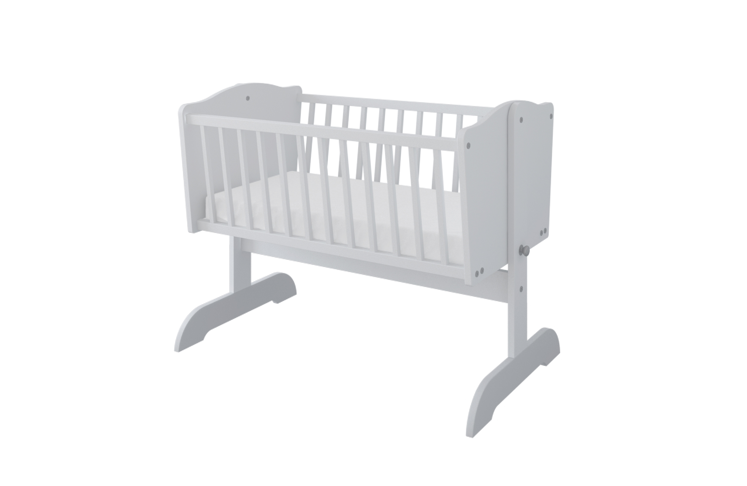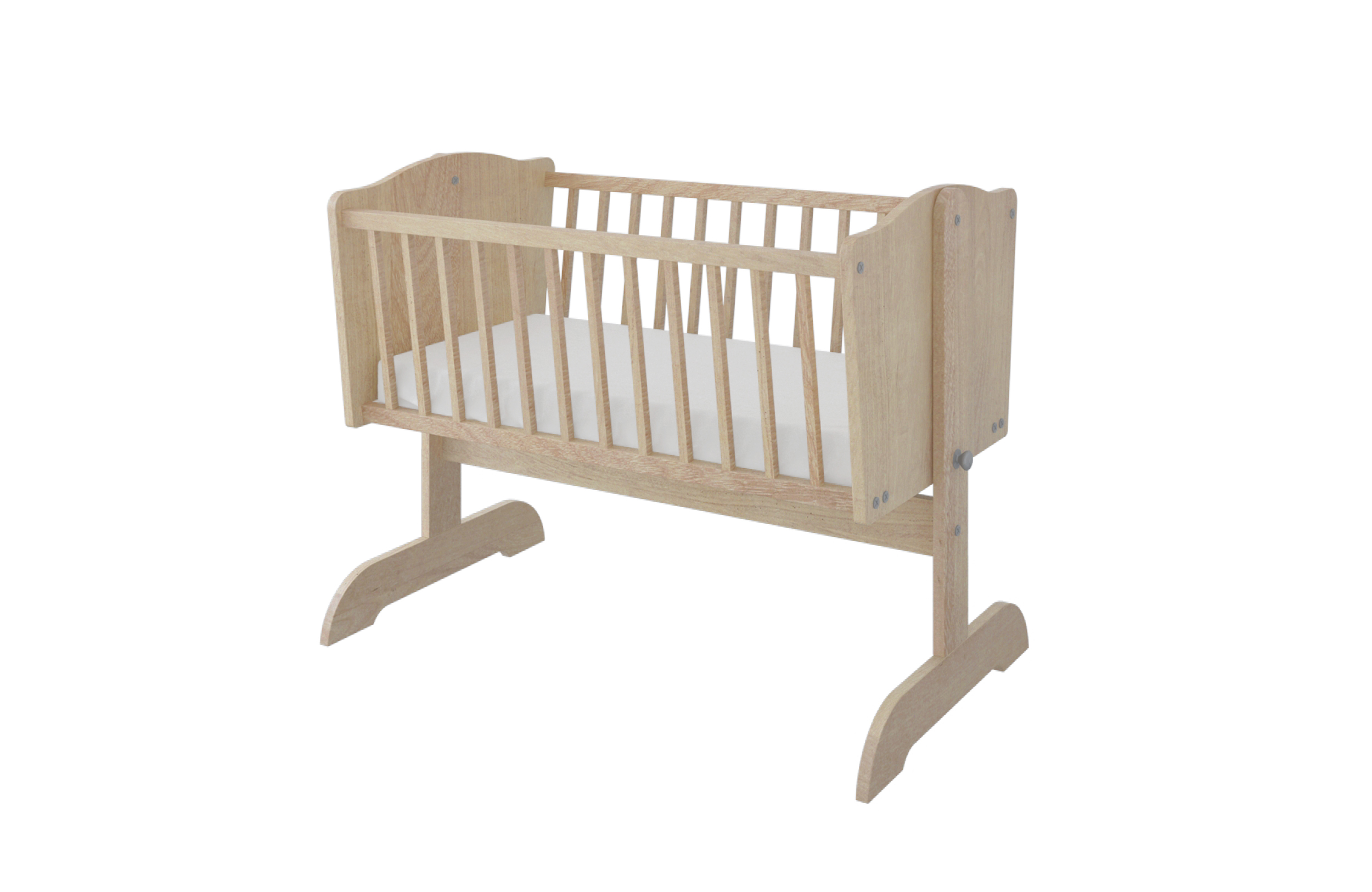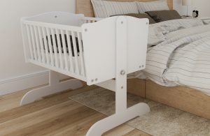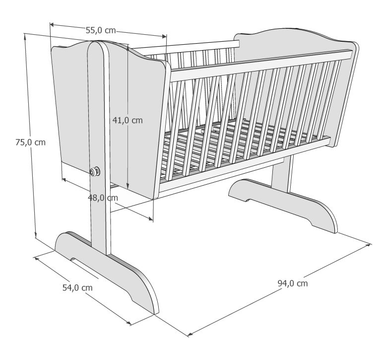 Kołyska wykonana została z połączenia płyty meblowej i drewna sosnowego, co gwarantuje trwałość oraz estetyczne wykończenie. Stelaż pod materac wykonano z litego drewna, zapewniającego odpowiednie podparcie dla ciała dziecka oraz trwałość przy codziennym użytkowaniu.