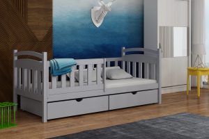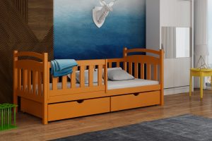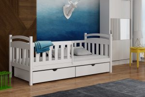 Łóżko Kornel to pojedyncze łóżko zaprojektowane z myślą o maksymalnym komforcie i bezpieczeństwie najmłodszych. Wysokie zagłówki i szerokie szczebelki przepuszczają dużo światła, zapewniając dziecku swobodny widok na otoczenie oraz poczucie przestrzeni. Solidna konstrukcja z naturalnego drewna, pokryta ekologicznym lakierem wodnym, jest bezpieczna także dla małych alergików. Szeroka gama rozmiarów i kolorów umożliwia dopasowanie łóżka do indywidualnych potrzeb i wystroju pokoju. Warto pamiętać, że biały kolor może z czasem ulec naturalnym przebarwieniom pod wpływem intensywnego nasłonecznienia.