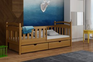 Łóżko Kornel to klasyczne, pojedyncze łóżko z litego drewna, stworzone z myślą o komforcie i bezpieczeństwie dziecka. Wysokie zagłówki, szerokie szczebelki oraz ekologiczne wykończenie łączą trwałość z ponadczasową elegancją.