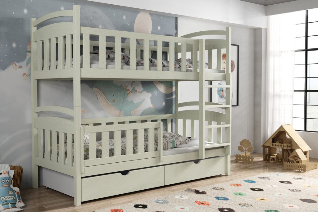 Model Krystian to trwałe łóżko piętrowe wykonane z wysokiej jakości drewna sosnowego, które zapewnia stabilność i wytrzymałość na lata. Zaokrąglone zagłówki i ochronne barierki gwarantują bezpieczeństwo podczas snu, a zarazem dodają meblowi przyjaznego, delikatnego charakteru. Łóżko piętrowe drewniane oferuje komfortowe miejsce do spania dla dwójki dzieci, a dodatkowo możesz wyposażyć je w praktyczne, wysuwane szuflady, które ułatwiają przechowywanie pościeli, zabawek czy innych drobiazgów. Do wyboru są również różne typy zabezpieczeń, dostosowane do potrzeb Twojej rodziny, co zwiększa funkcjonalność i bezpieczeństwo użytkowania.