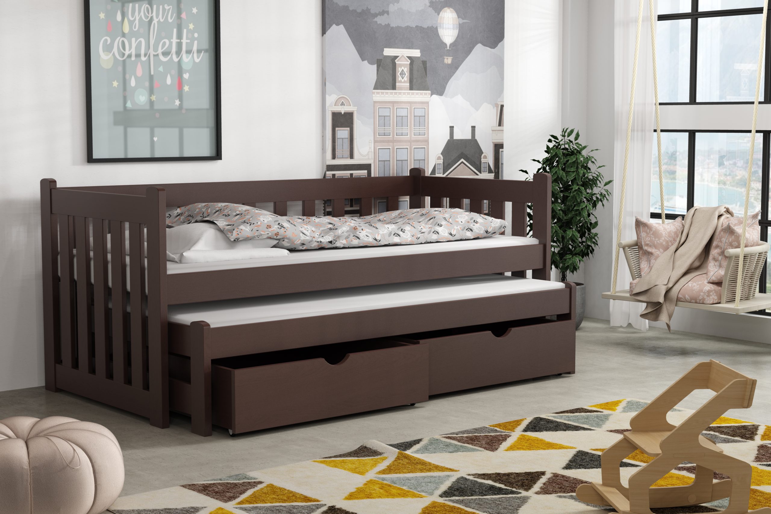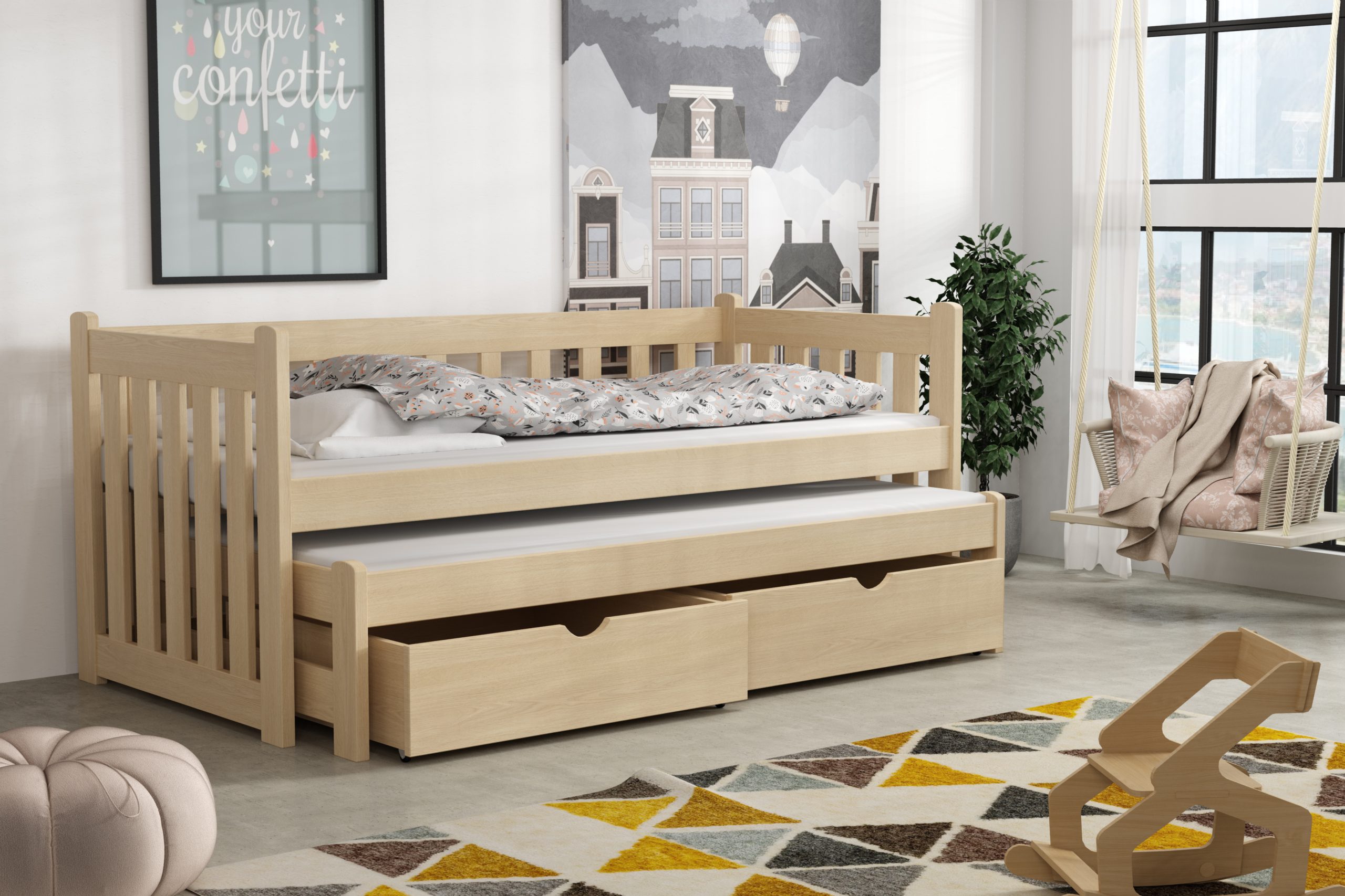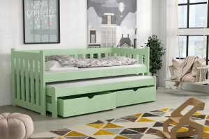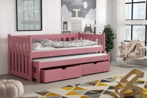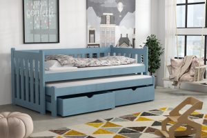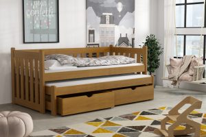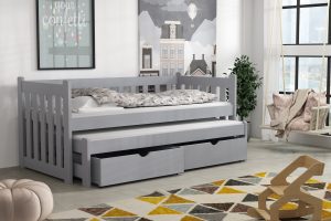 Łóżko podwójne Krzyś to idealne miejsce odpoczynku dla małych odkrywców, łączące wygodę, bezpieczeństwo i możliwość spania dwóch osób dzięki wysuwanemu dodatkowi.