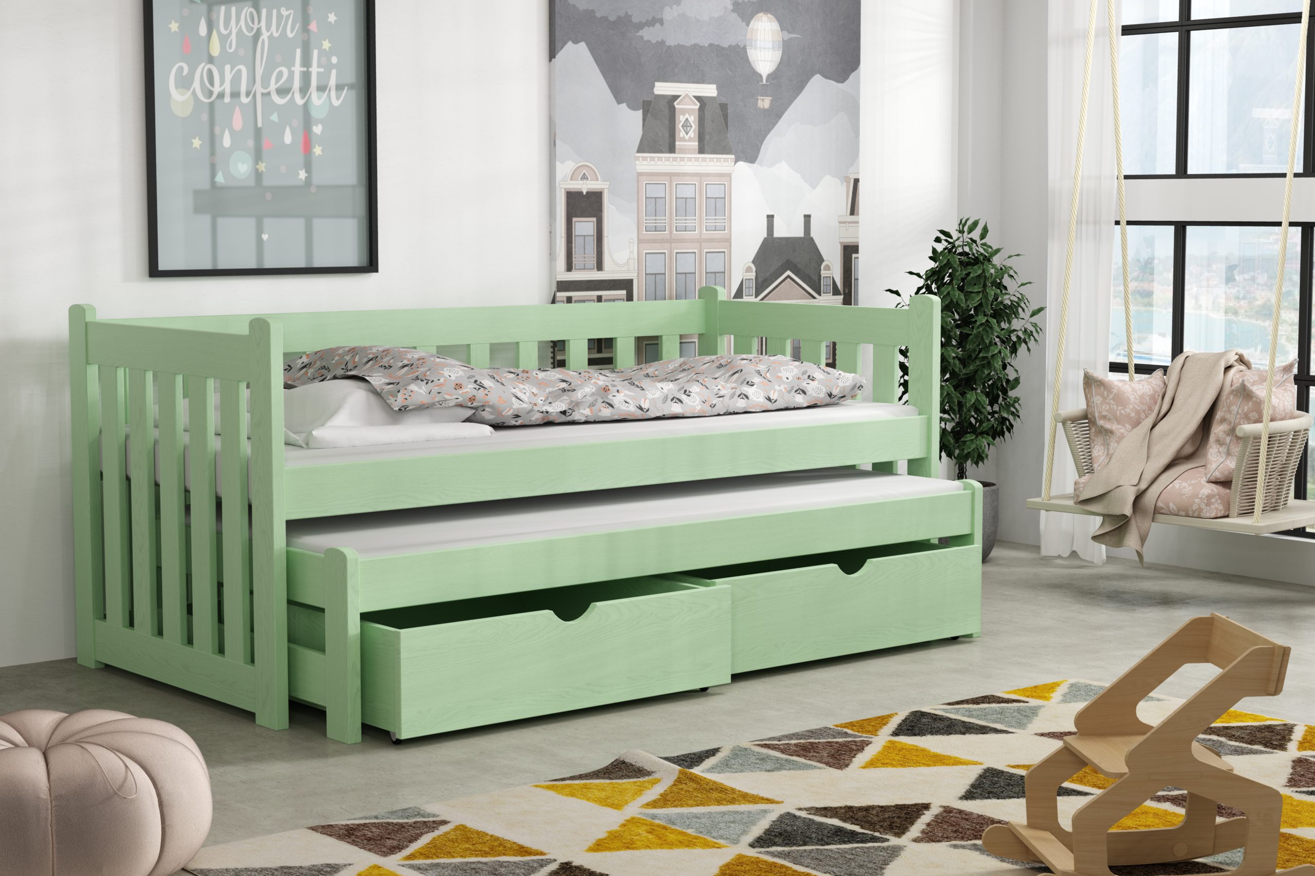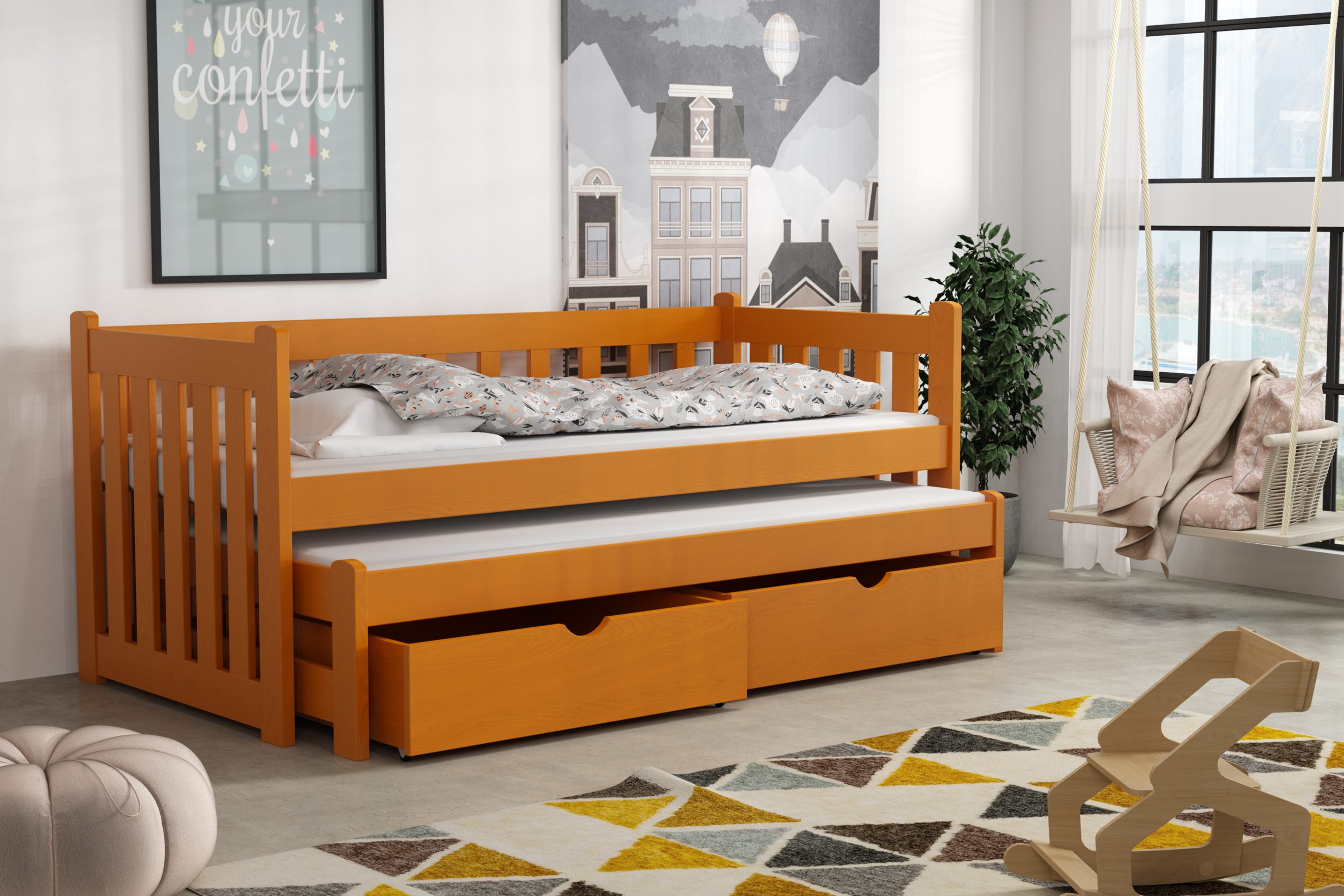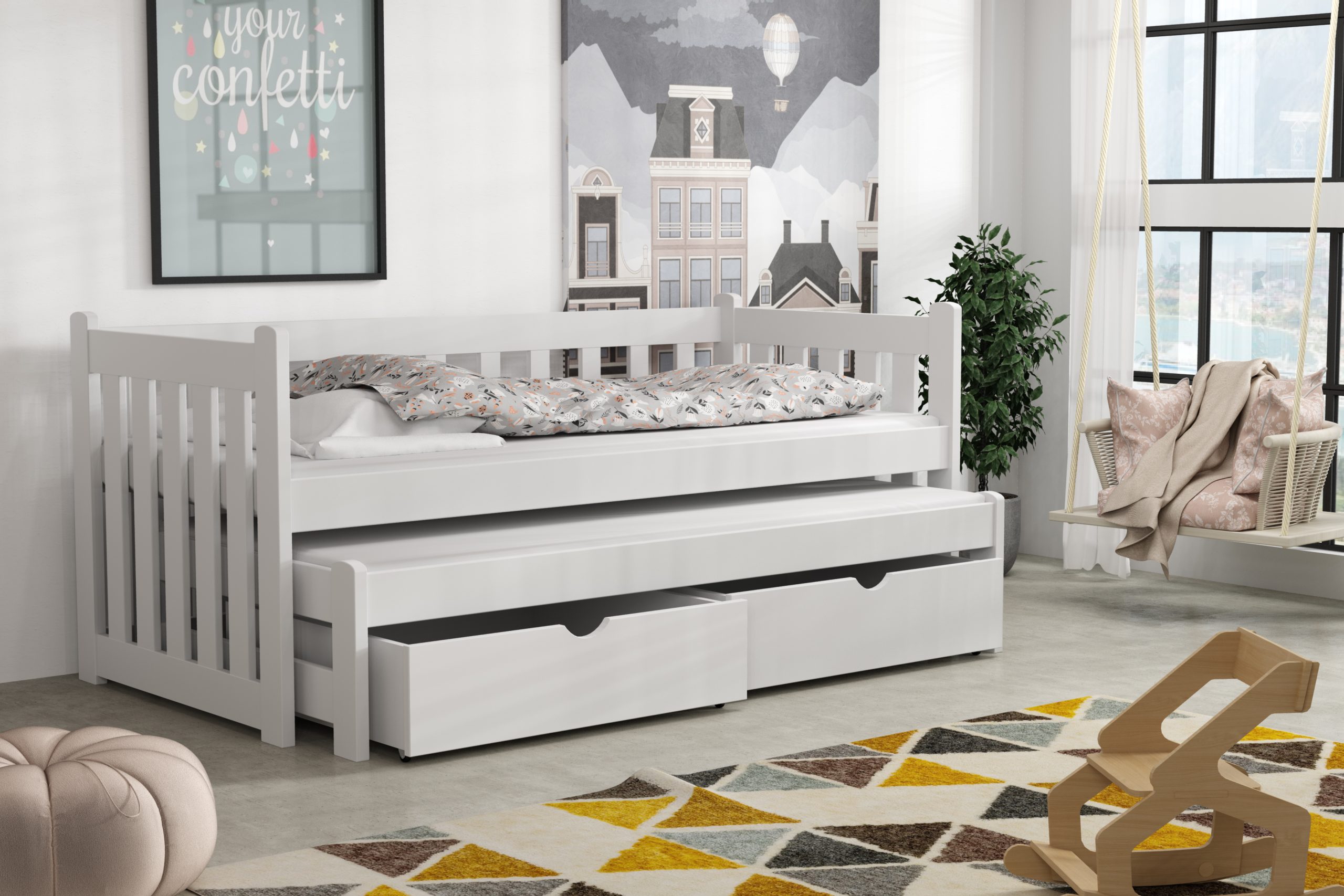 Łóżko podwójne Krzyś to idealne miejsce odpoczynku dla małych odkrywców, łączące wygodę, bezpieczeństwo i możliwość spania dwóch osób dzięki wysuwanemu dodatkowi.