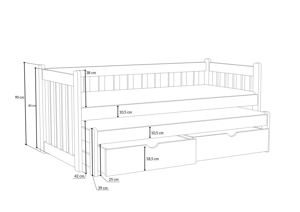 - Konstrukcja łóżka: Drewno sosnowe 100%