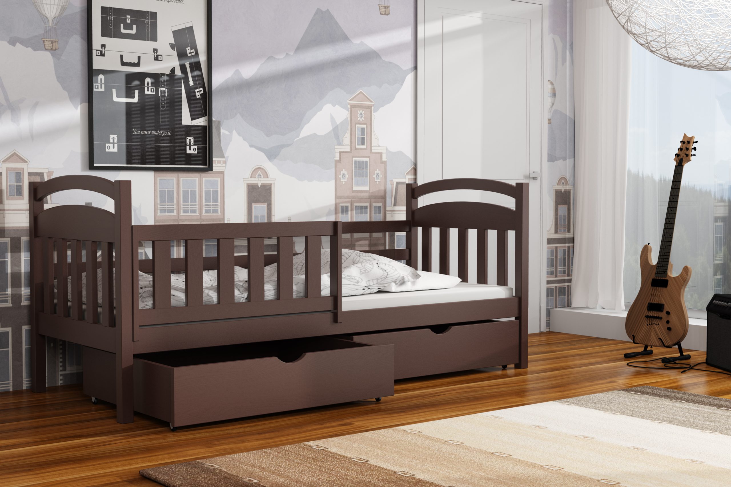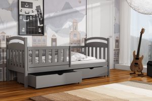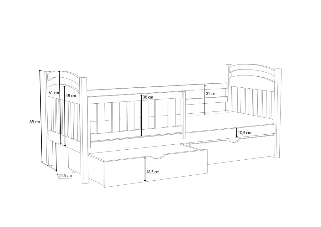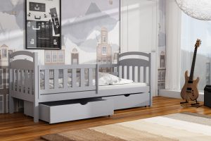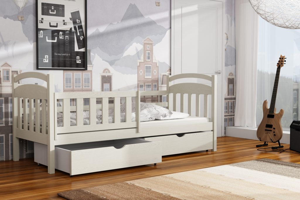 Łóżko Kubuś wykonano z najwyższej jakości drewna sosnowego i pokryto bezpiecznym lakierem wodnym, przyjaznym nawet dla alergików. Model dostępny jest w 12 rozmiarach i 11 kolorach, z opcjonalnymi szufladami oraz możliwością dodania wysuwanej części do spania. Warto pamiętać, że biały kolor może z czasem zmieniać odcień pod wpływem intensywnego działania promieni słonecznych. Dzięki elastycznym opcjom wyposażenia łóżko Kubuś łatwo dostosujesz do zmieniających się potrzeb Twojego dziecka.