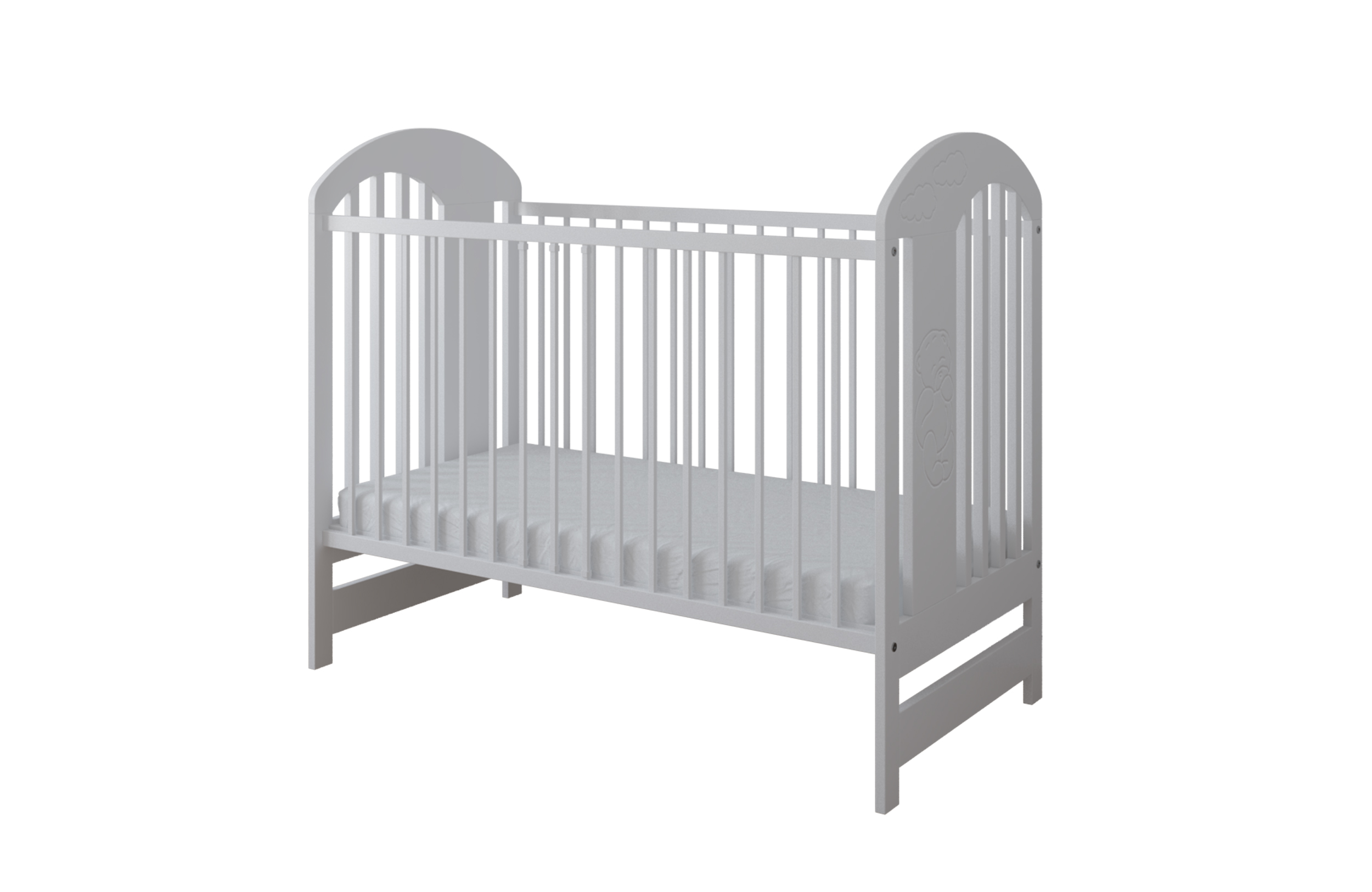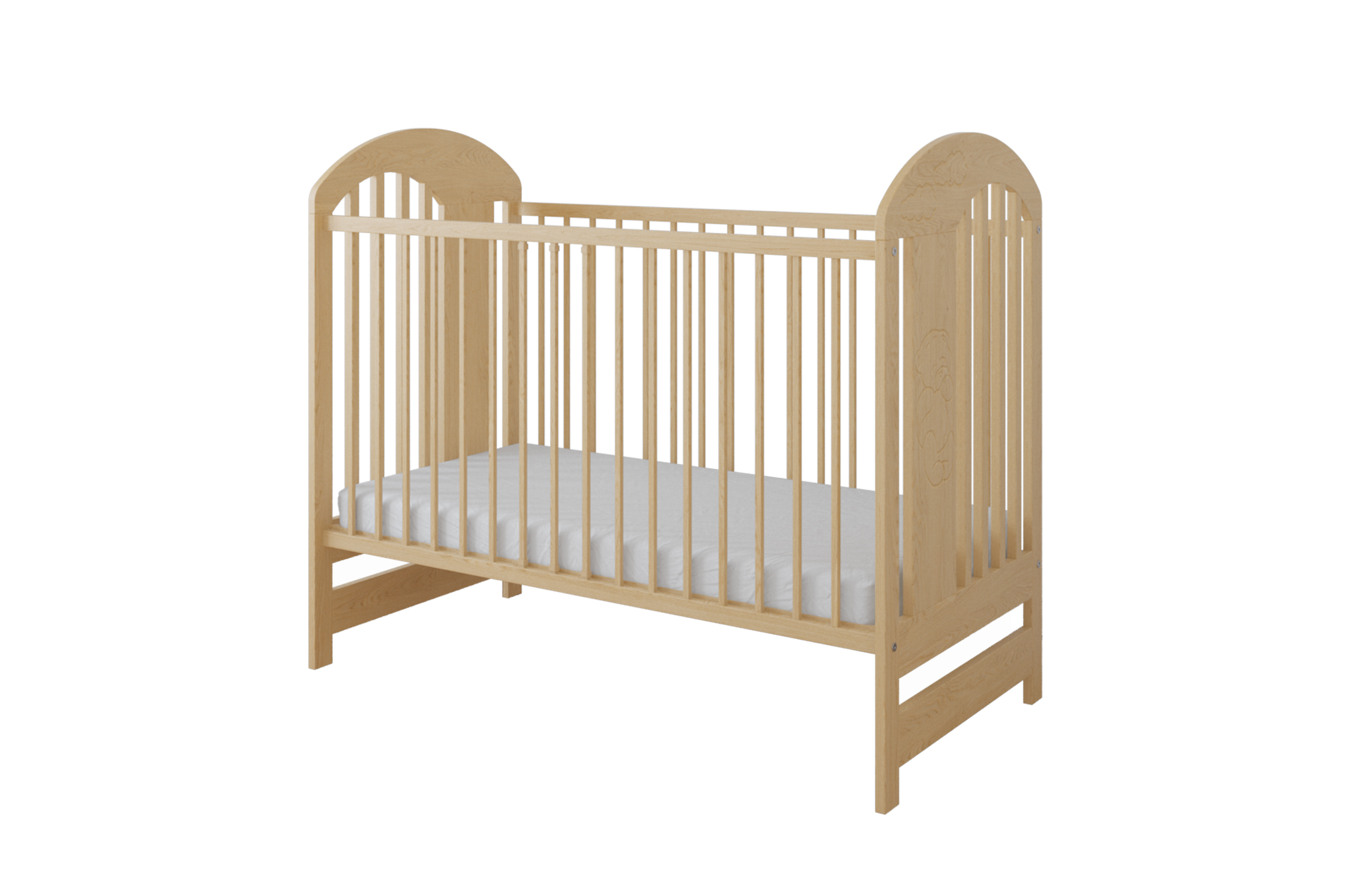 - Element dekoracyjny: frezowany miś po obu stronach łóżeczka (w standardzie, bez dopłaty)