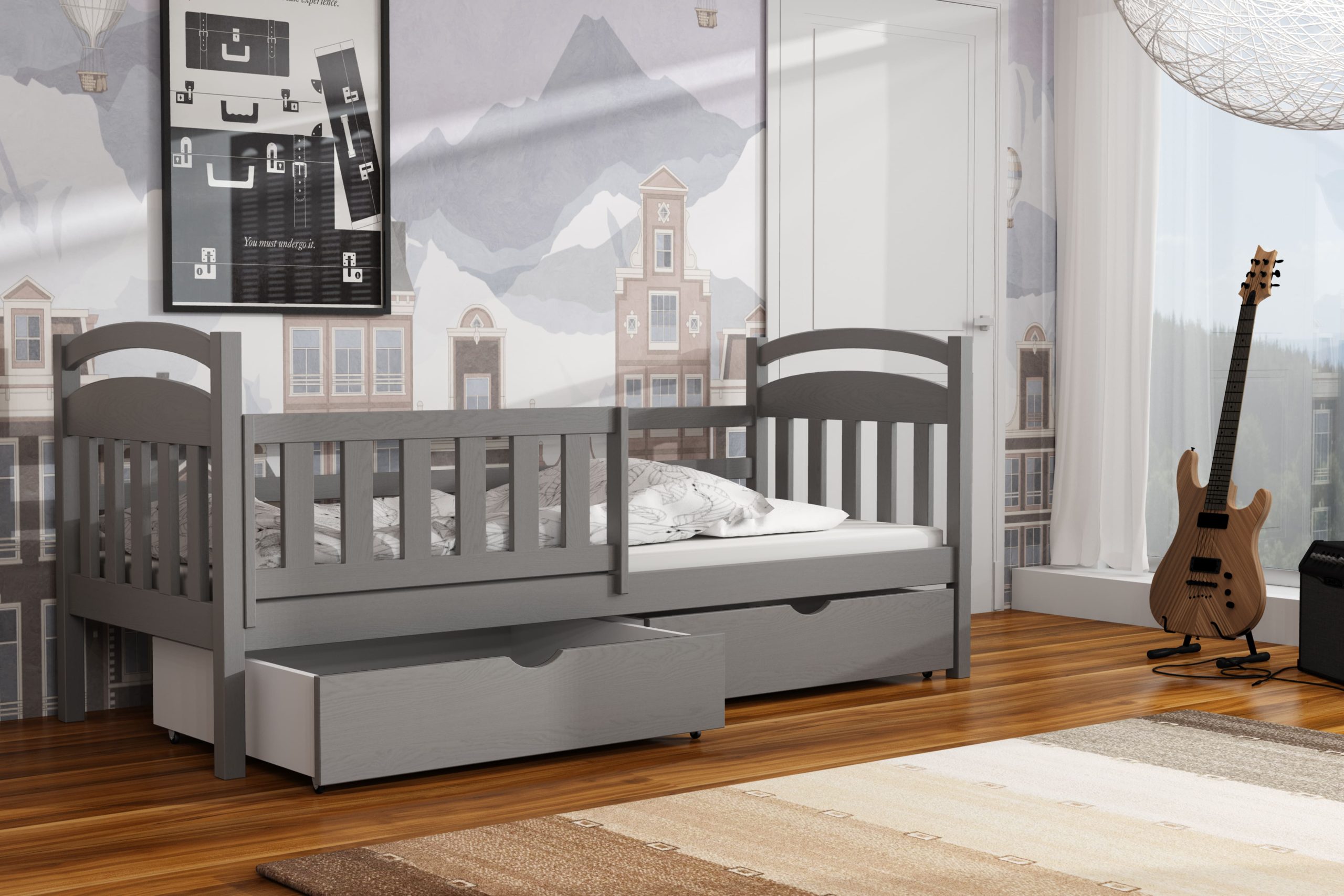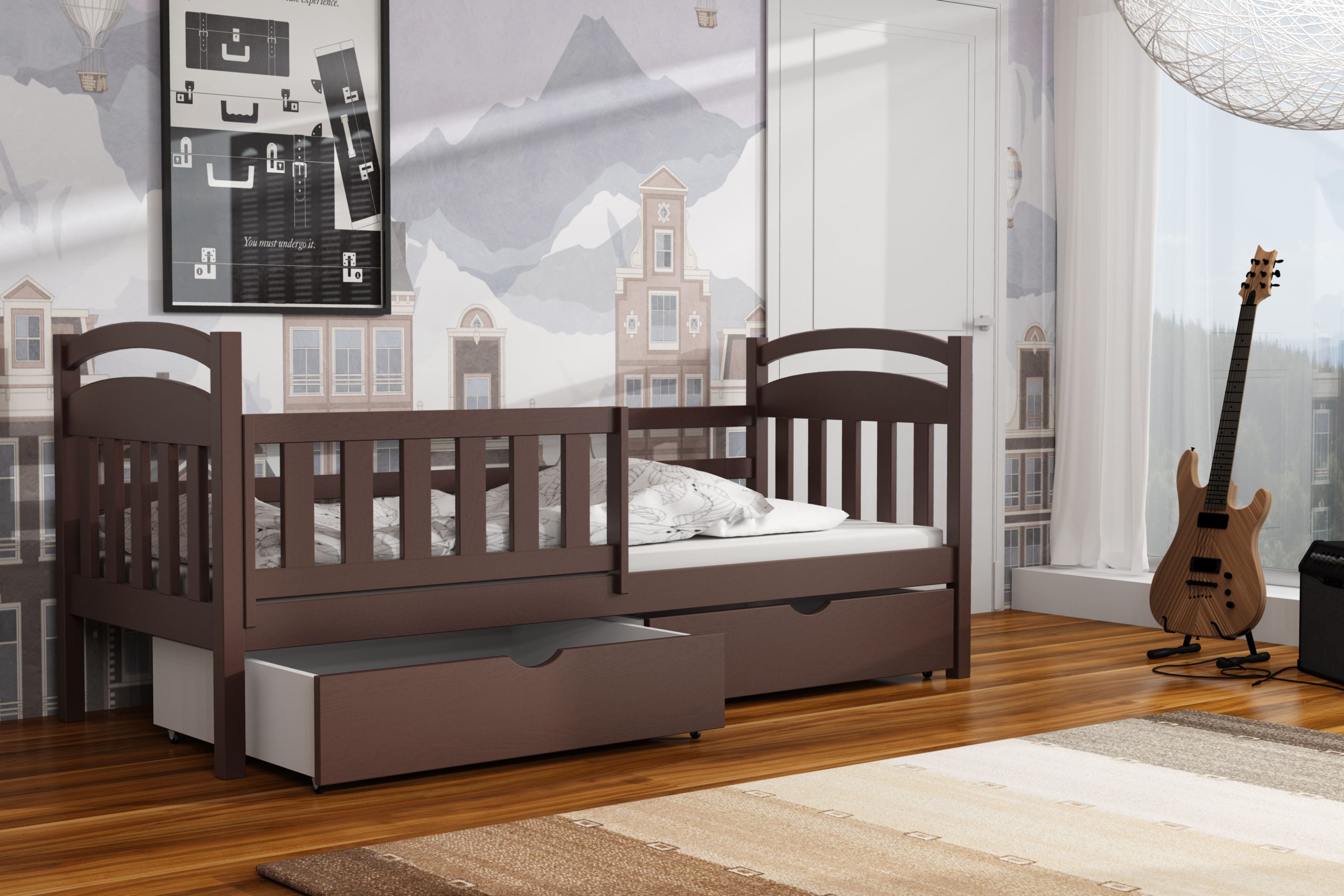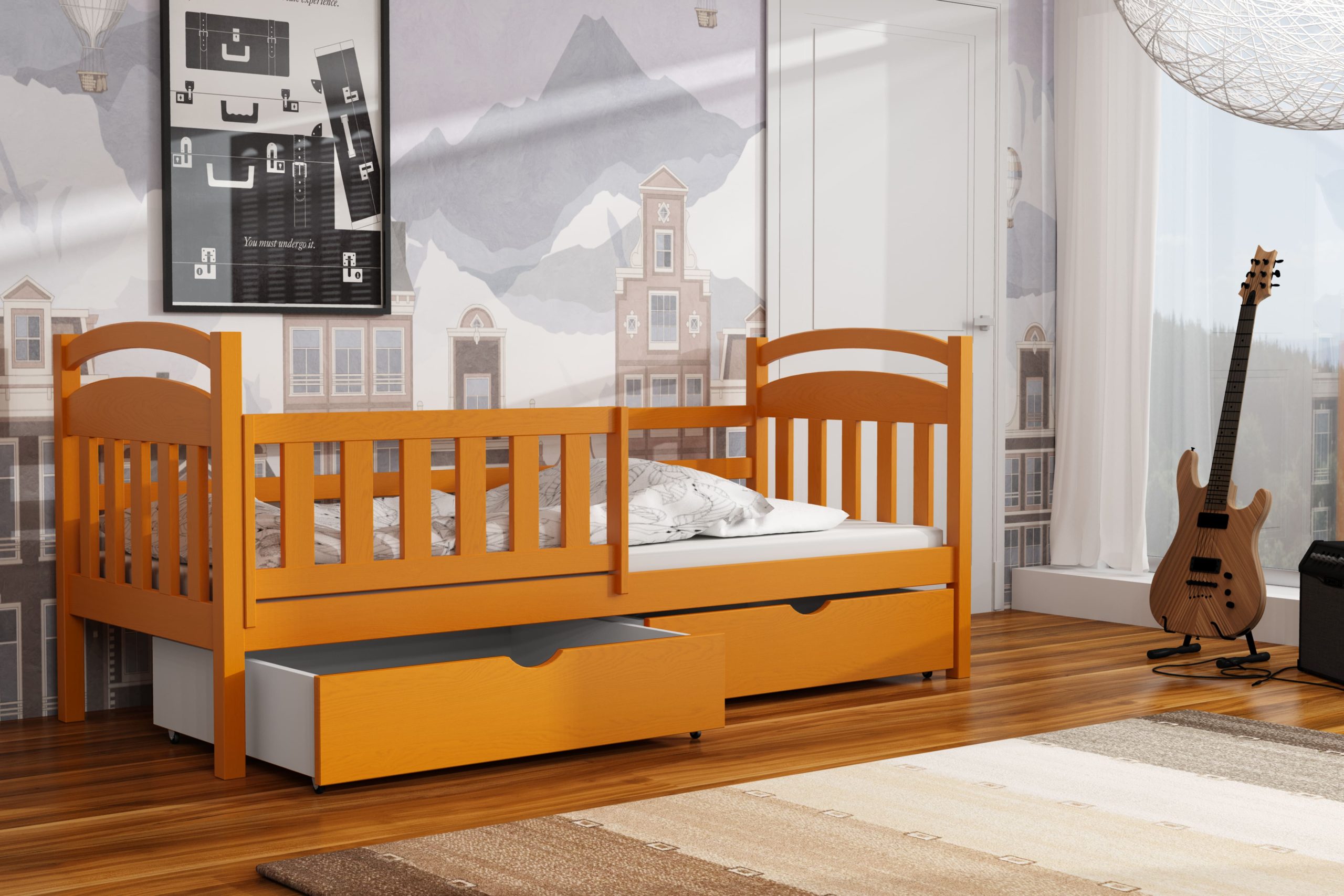 Łóżko Kubuś wykonano z najwyższej jakości drewna sosnowego i pokryto bezpiecznym lakierem wodnym, przyjaznym nawet dla alergików. Model dostępny jest w 12 rozmiarach i 11 kolorach, z opcjonalnymi szufladami oraz możliwością dodania wysuwanej części do spania. Warto pamiętać, że biały kolor może z czasem zmieniać odcień pod wpływem intensywnego działania promieni słonecznych. Dzięki elastycznym opcjom wyposażenia łóżko Kubuś łatwo dostosujesz do zmieniających się potrzeb Twojego dziecka.