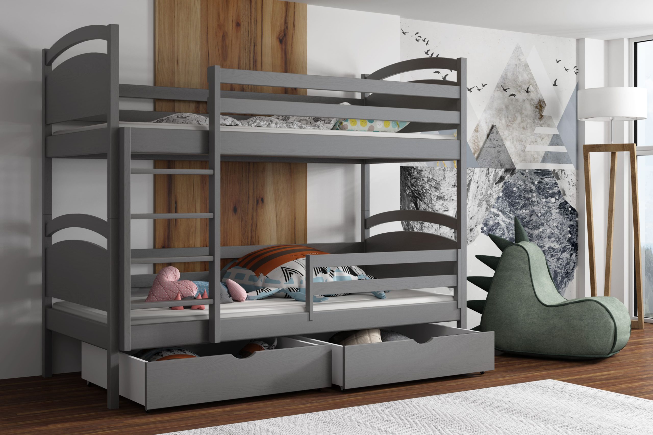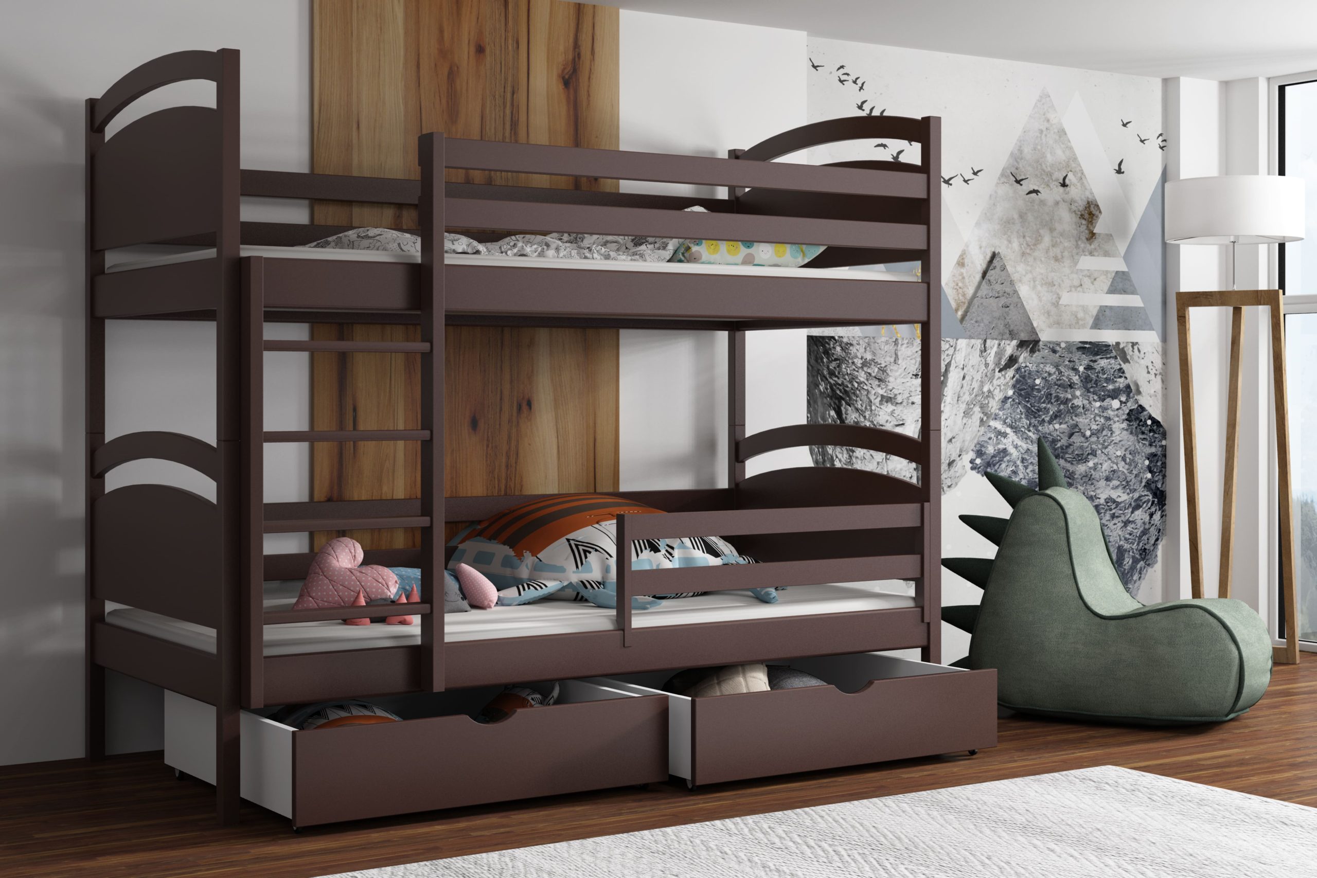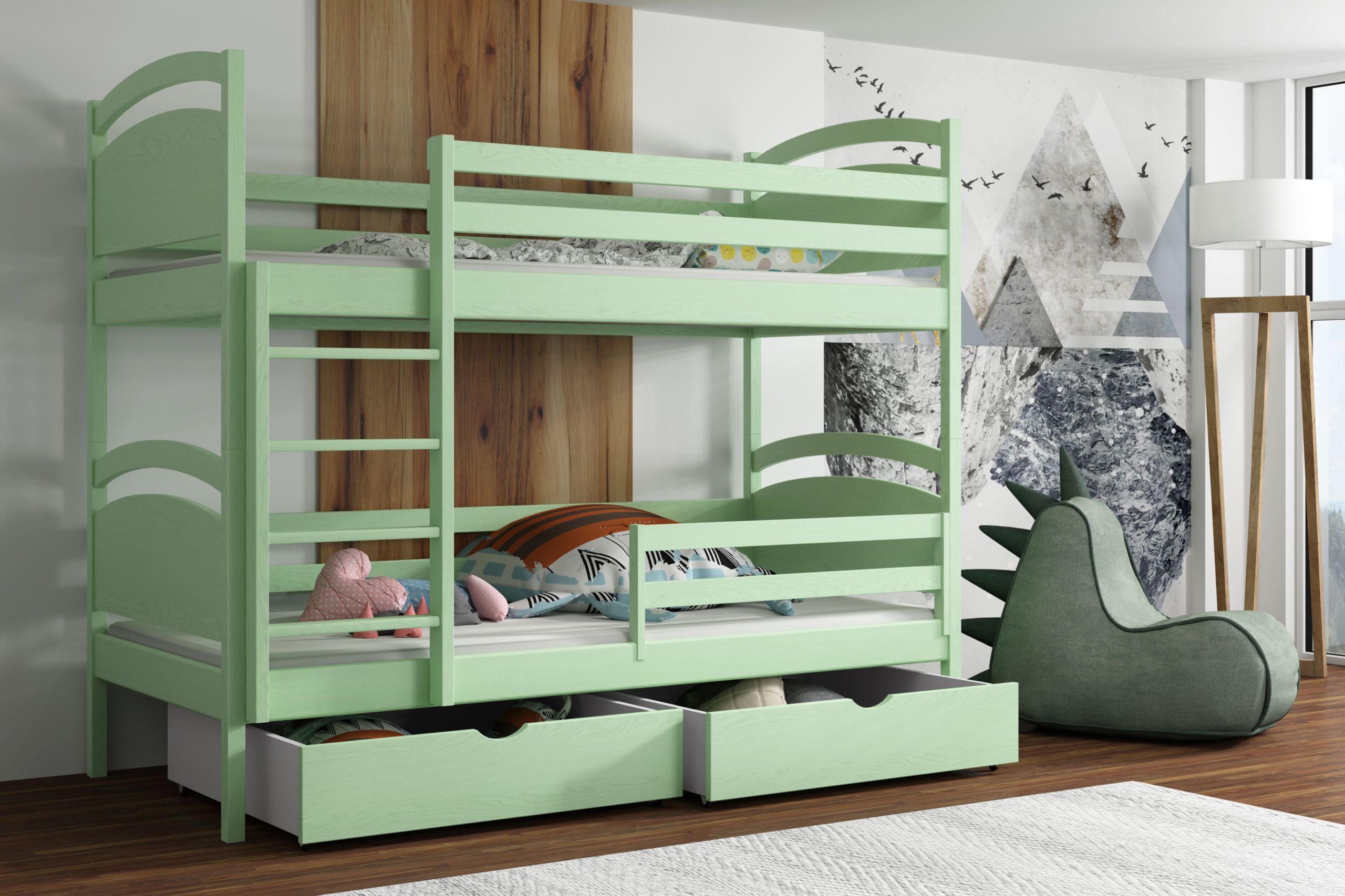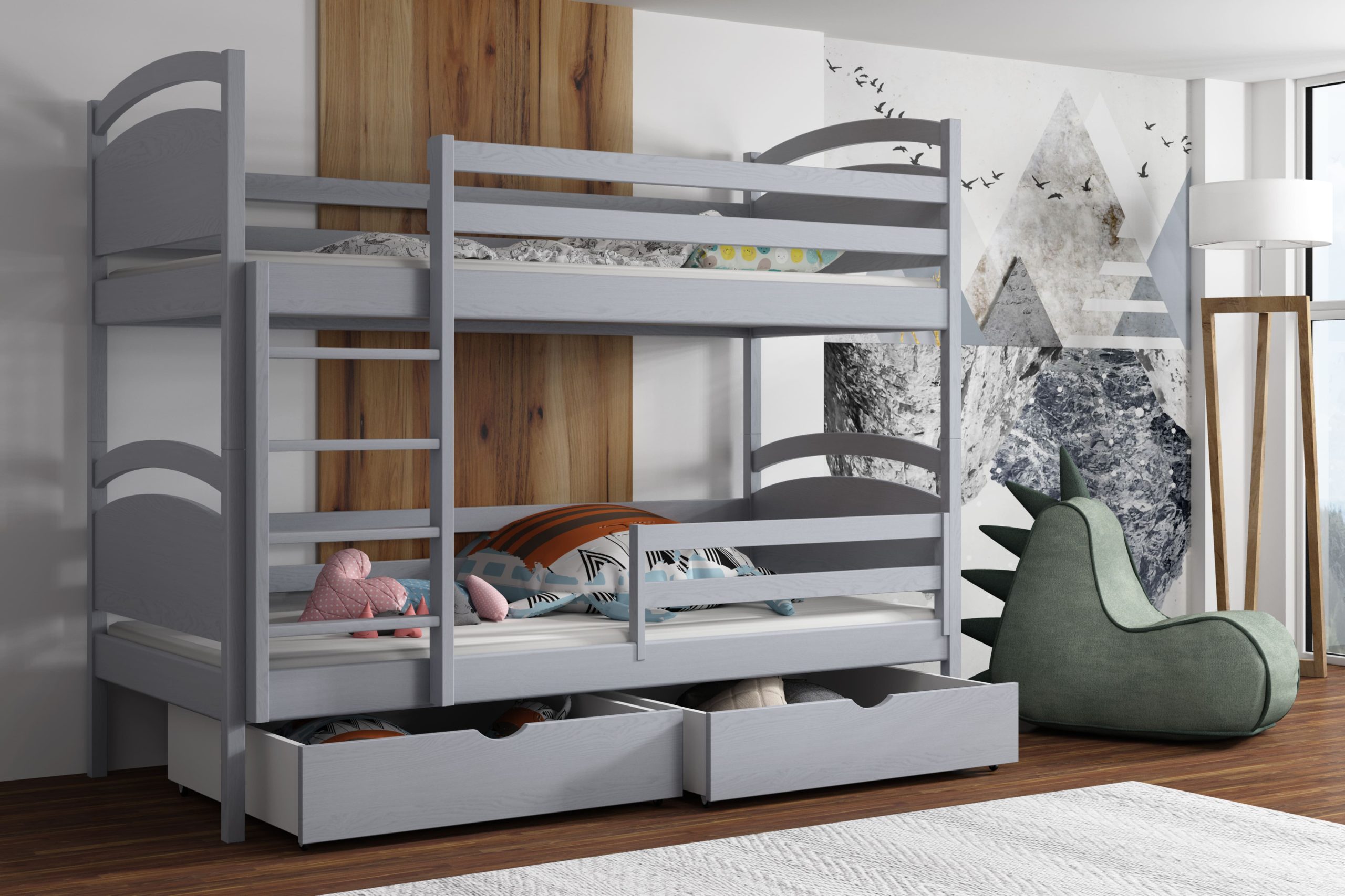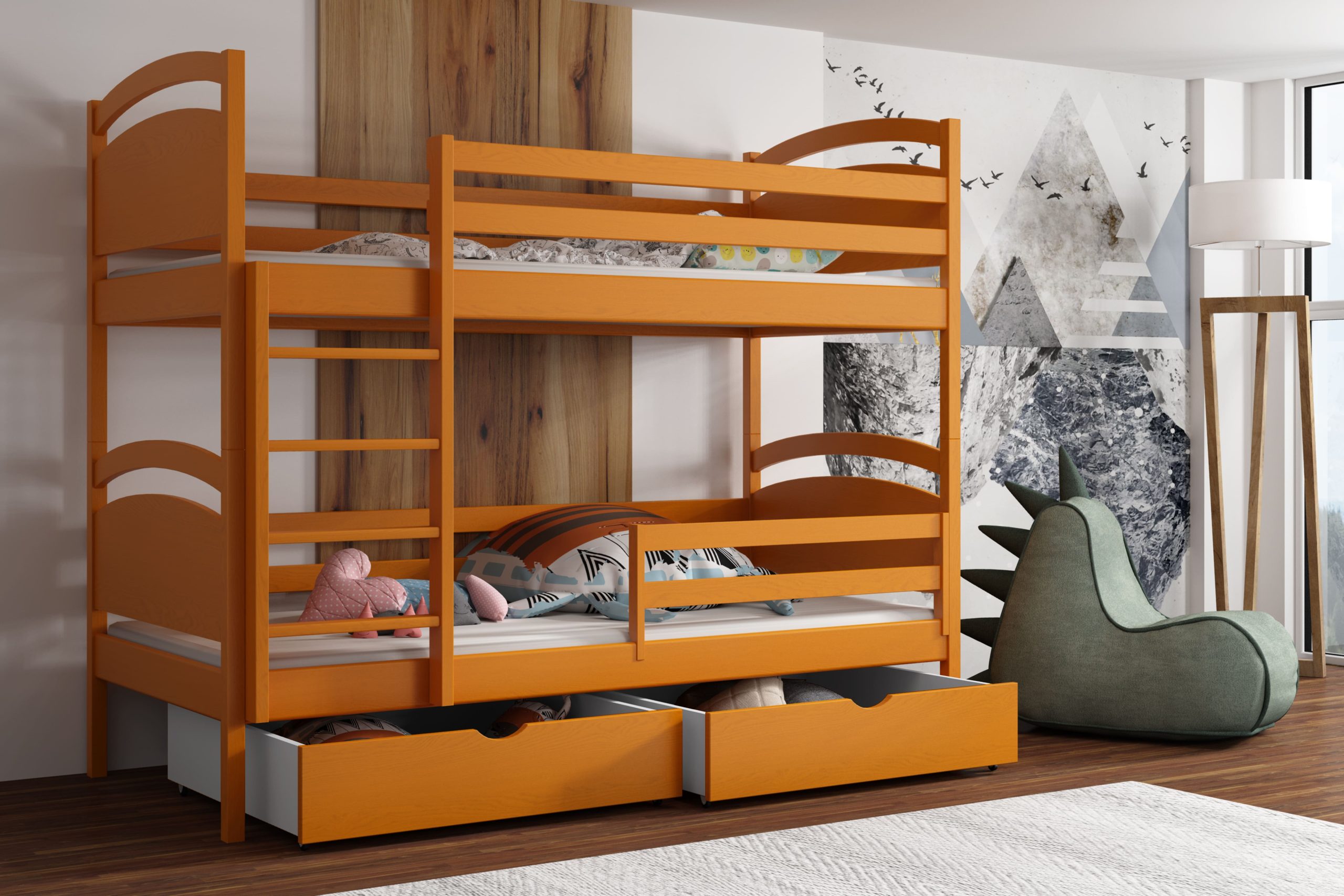 Model Marcelina wyróżnia się nie tylko elegancką linią, ale również praktycznością. Pod dolnym poziomem znajdują się dwie pojemne szuflady, idealne na pościel, zabawki czy ubrania, dzięki czemu w pokoju dzieci łatwiej utrzymać porządek. To świetne rozwiązanie zwłaszcza do niewielkich wnętrz, gdzie liczy się każda dodatkowa przestrzeń do przechowywania.