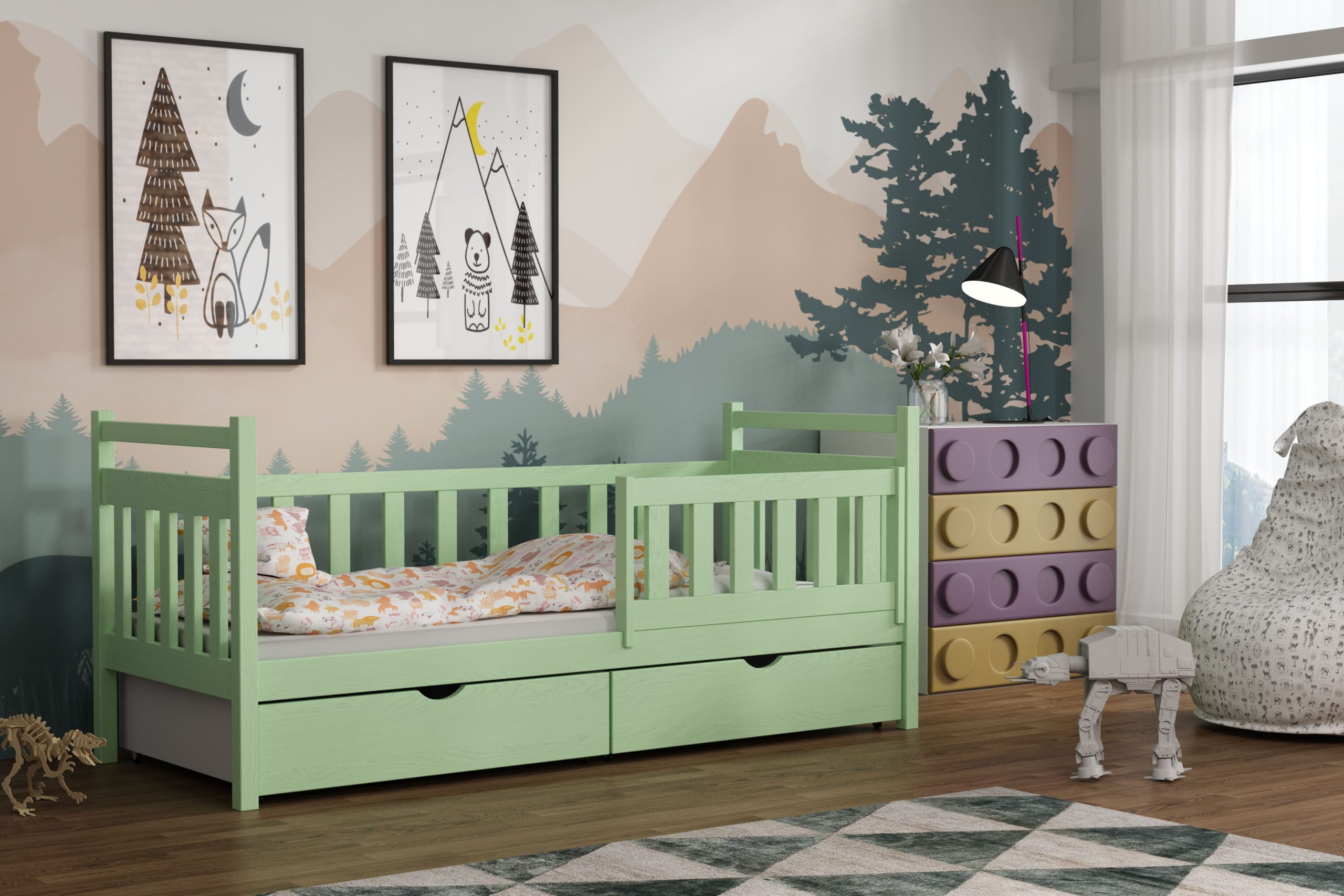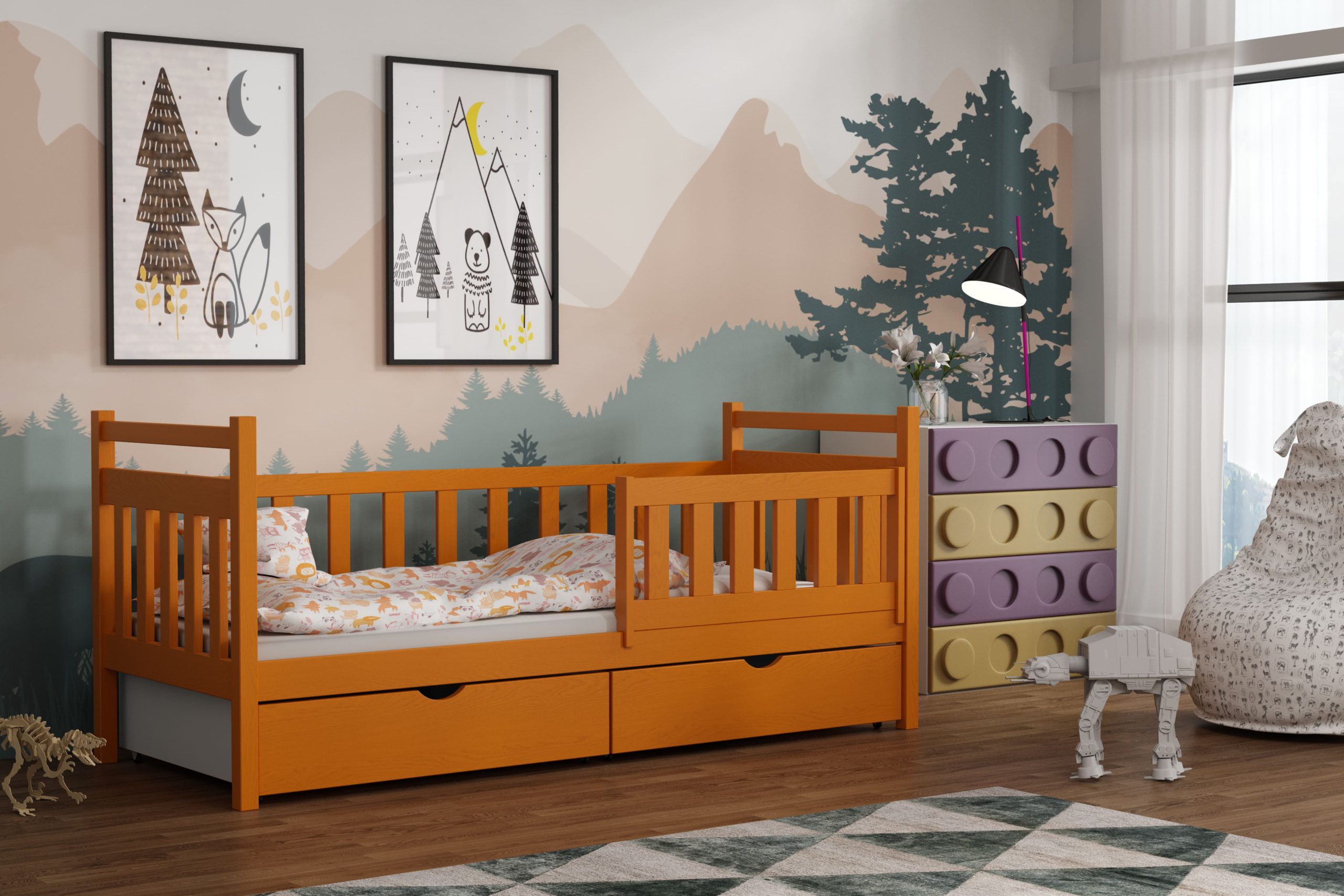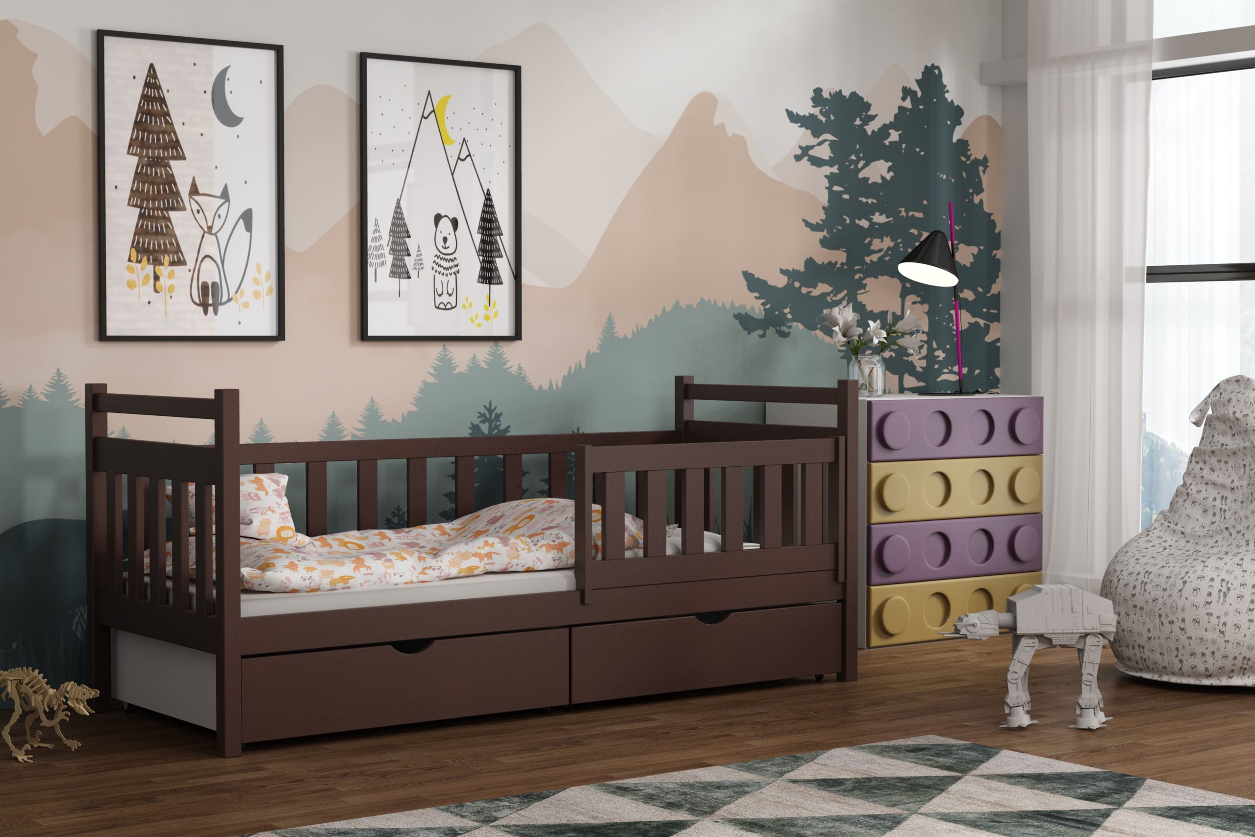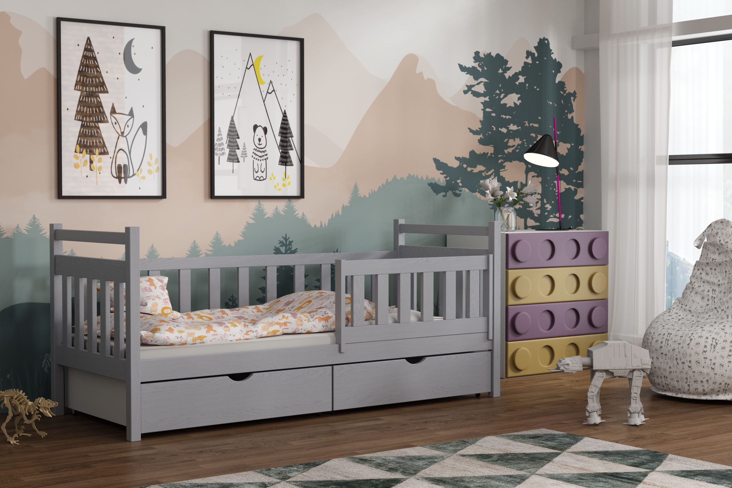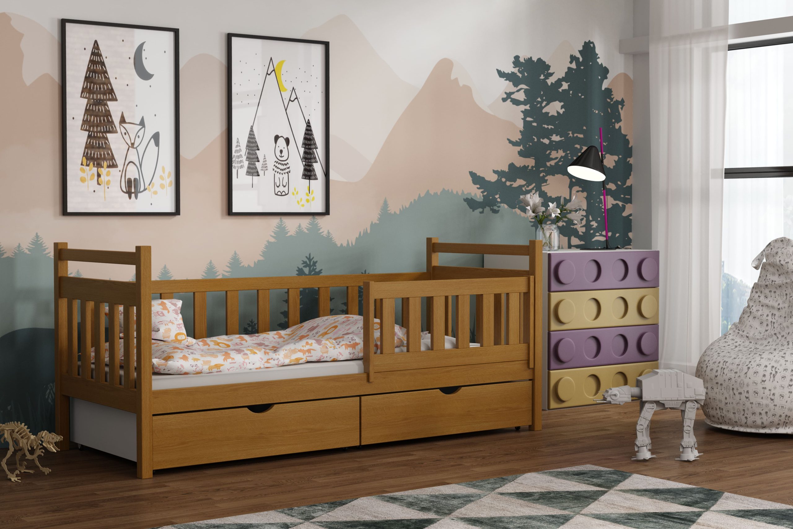 Łóżko pojedyncze Natalia to klasyczne, solidne rozwiązanie z litego drewna, które łączy bezpieczeństwo, wygodę i ponadczasowy design idealny do dziecięcego pokoju.