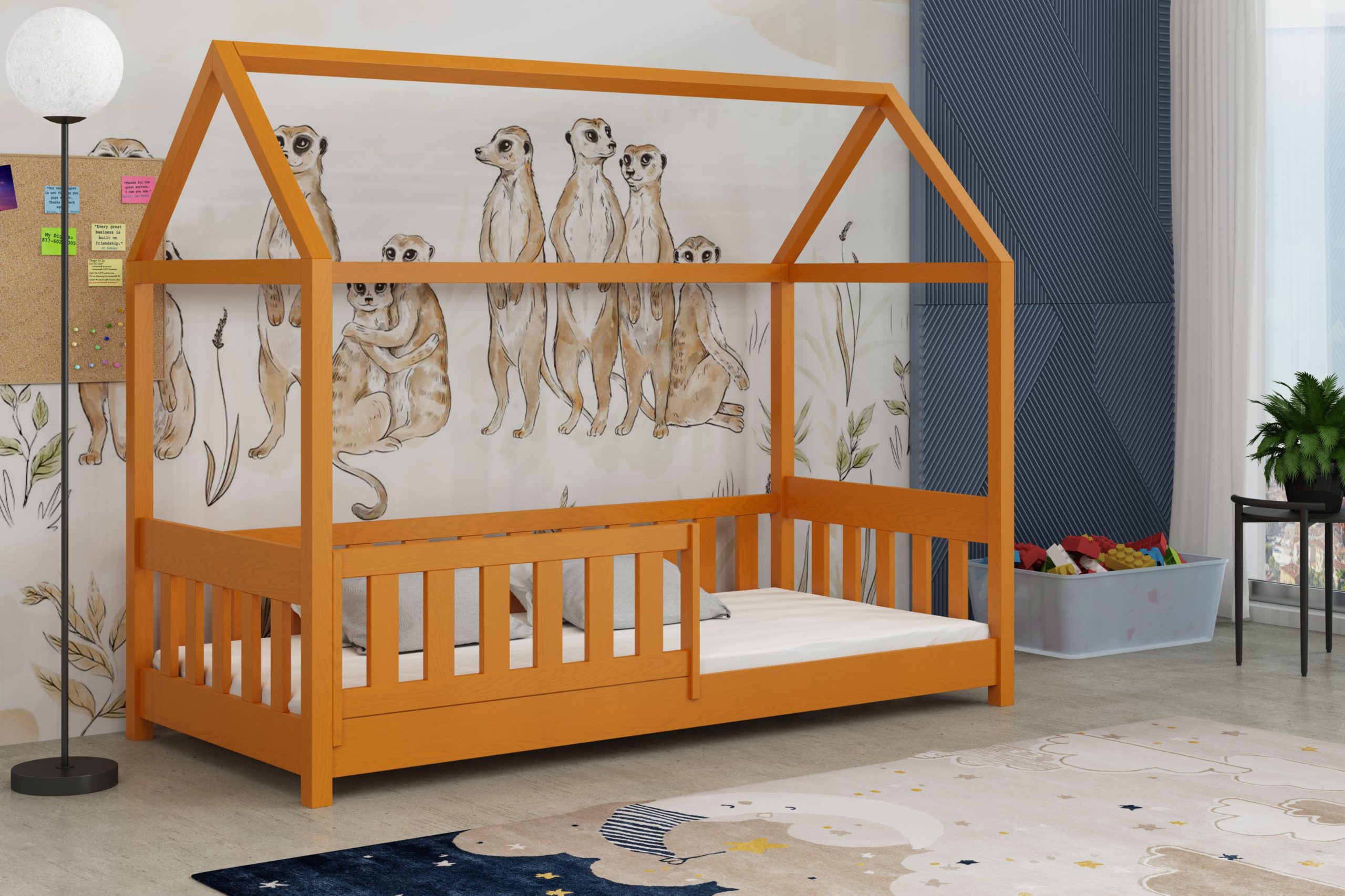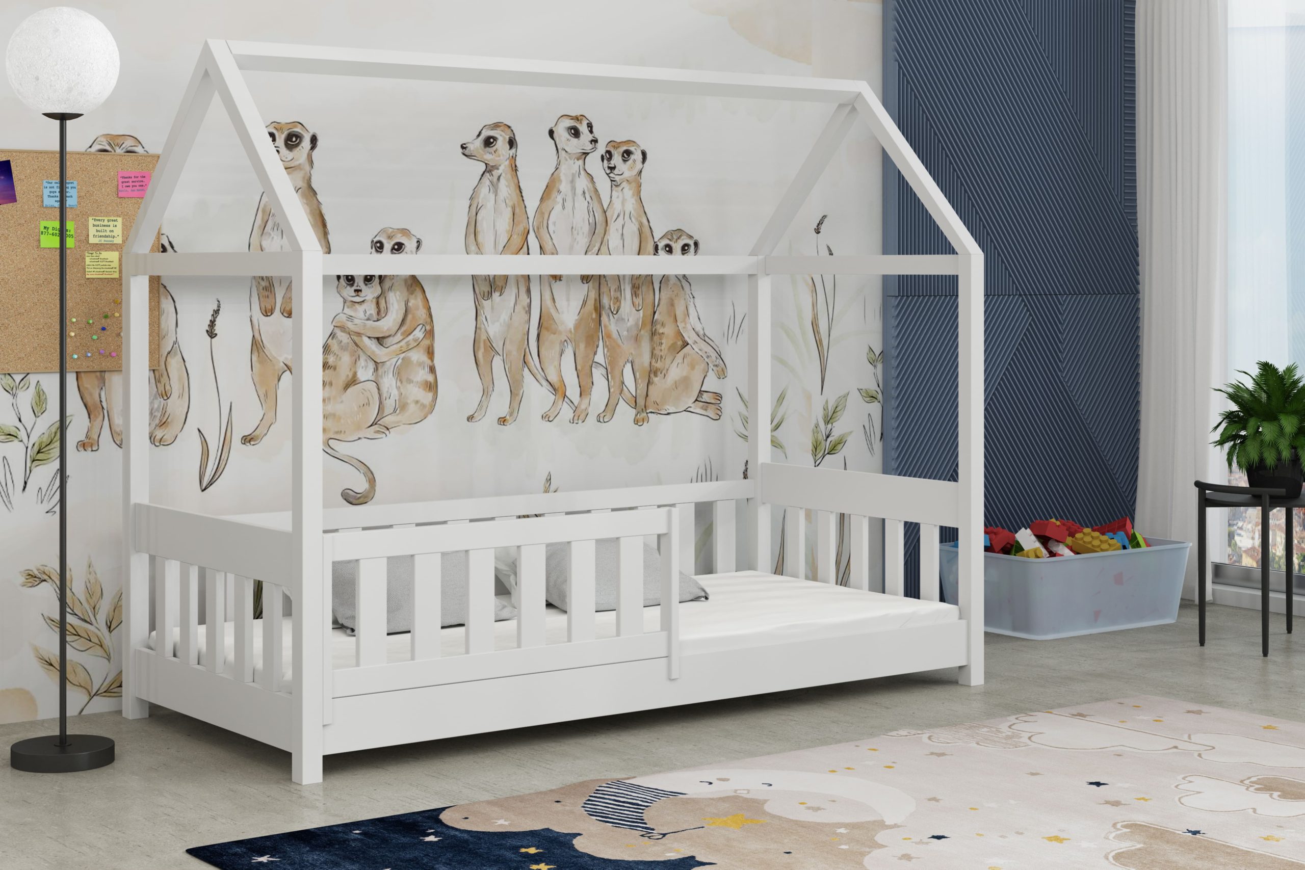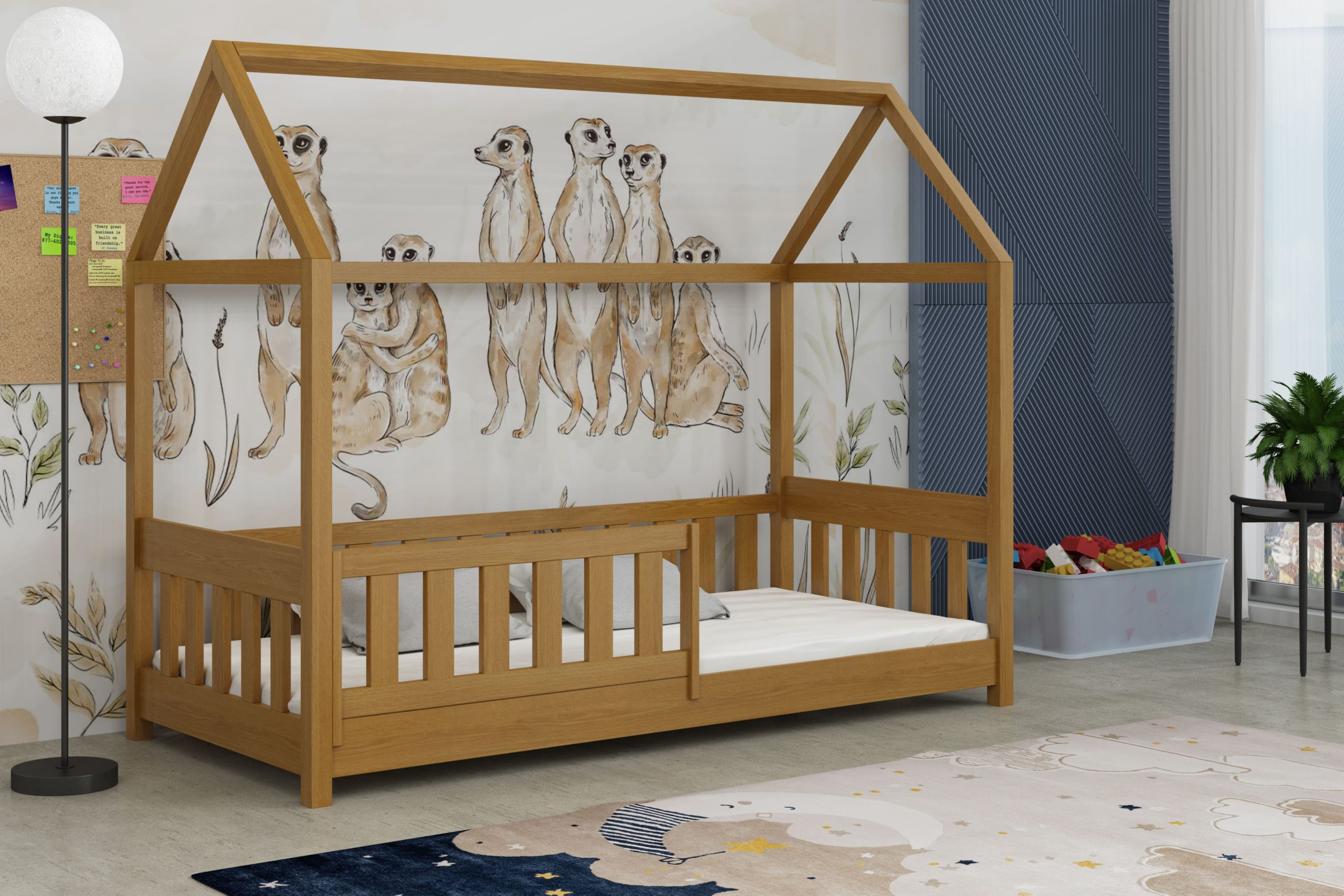 Łóżko Paweł w kształcie domku łączy bezpieczny sen z bajkową przestrzenią do zabawy.