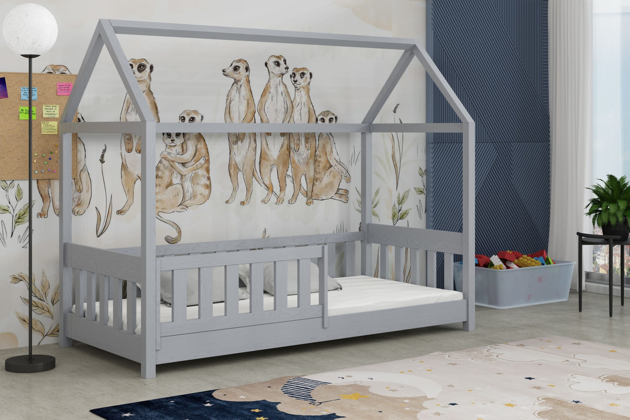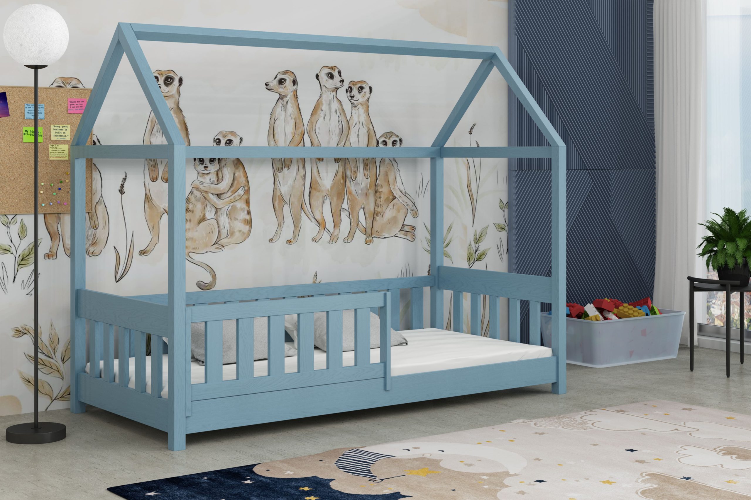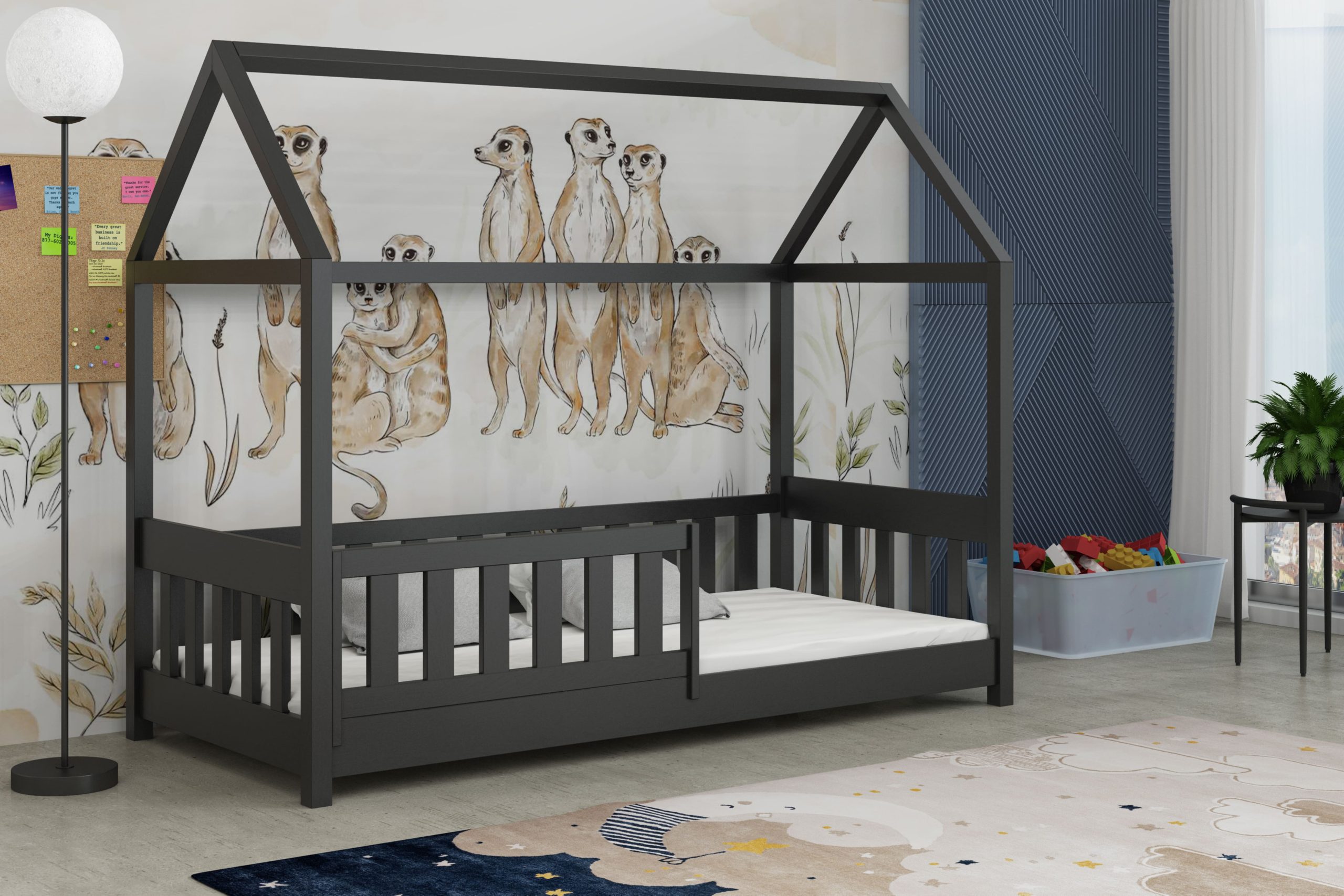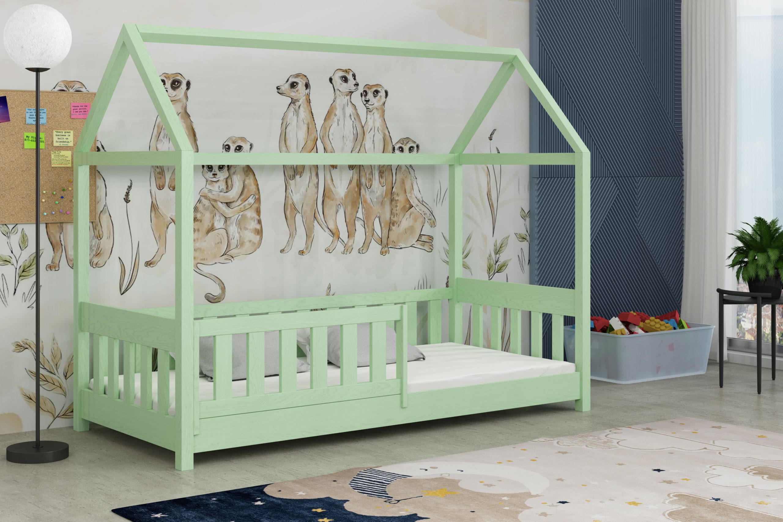 Łóżko Paweł w kształcie domku łączy bezpieczny sen z bajkową przestrzenią do zabawy.