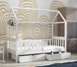 Łóżko domek Maciejka to wyjątkowy mebel, który łączy w sobie funkcjonalność, estetykę i radość dziecięcej zabawy. Dzięki oryginalnej konstrukcji w kształcie małego domku tworzy niepowtarzalny klimat w pokoju i sprawia, że przestrzeń staje się bardziej przytulna i inspirująca. To doskonałe rozwiązanie dla rodziców, którzy poszukują nie tylko miejsca do spania, ale także mebla wspierającego rozwój dziecka i jego wyobraźnię.