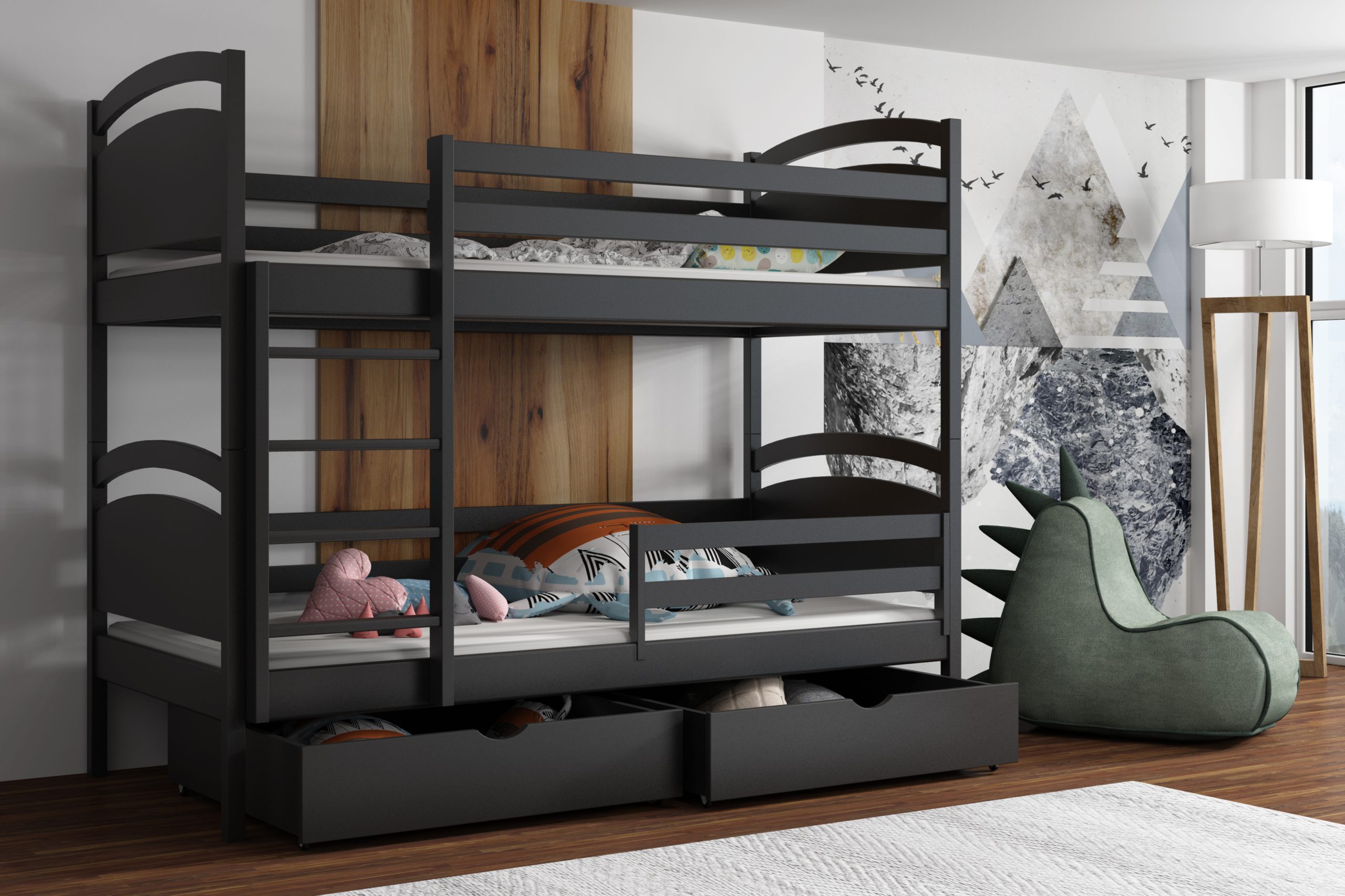- Przeznaczenie: funkcjonalne łóżko piętrowe dla dzieci – oszczędne rozwiązanie przestrzeni z dodatkowymi szufladami
