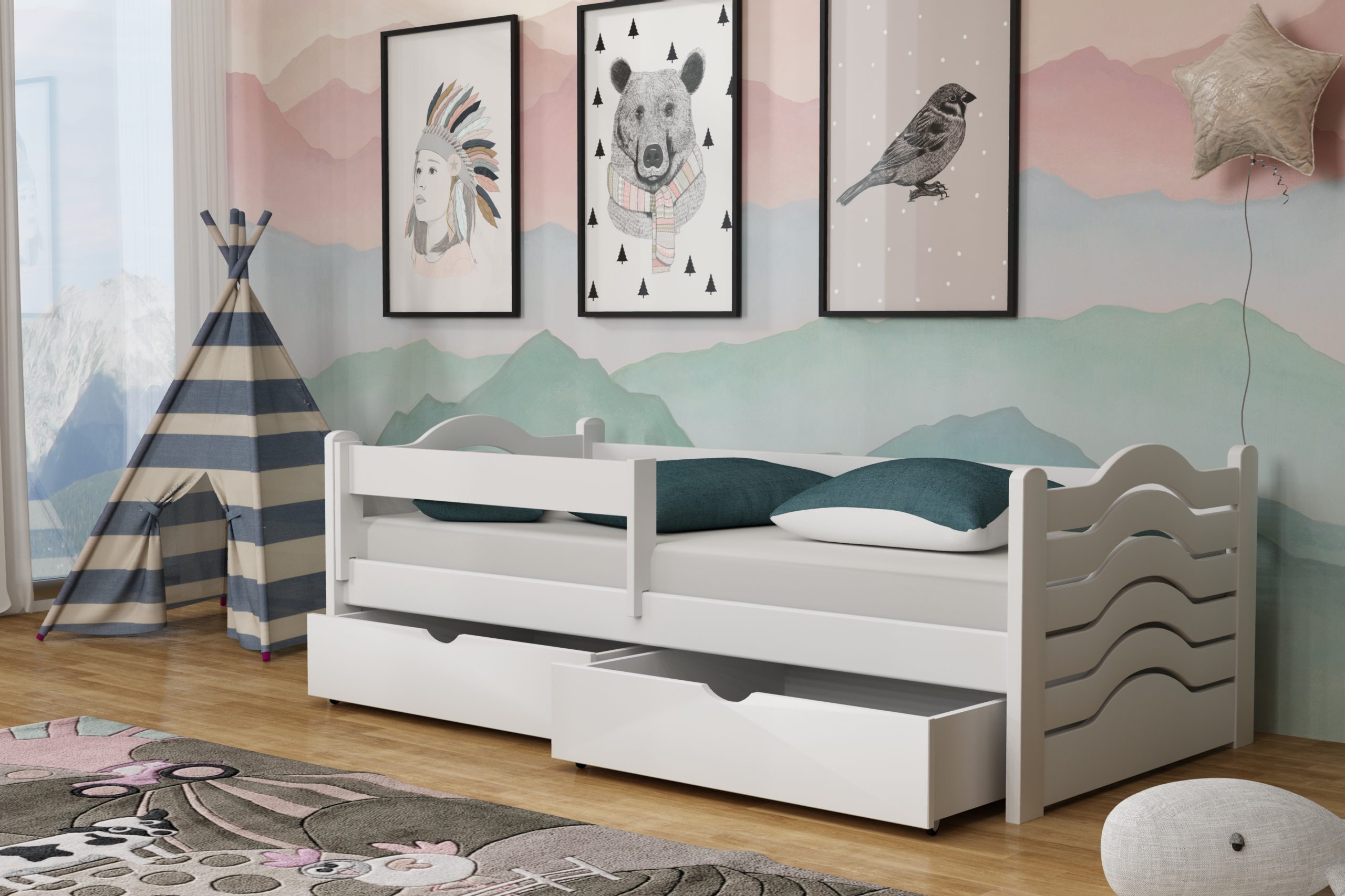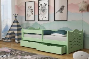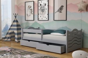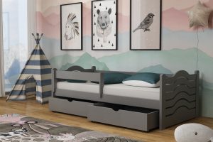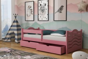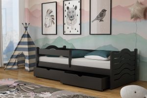 Praktyczność łączy się tu z estetyką – pod łóżkiem znajdują się dwie głębokie szuflady idealne na pościel, zabawki czy ubrania, co ułatwia utrzymanie porządku w pokoju. Łóżko Pinokio dostępne jest w 11 rozmiarach i 12 wariantach kolorystycznych, dzięki czemu łatwo dopasujesz je do indywidualnych potrzeb i stylu wnętrza. Warto chronić jasne wykończenia, zwłaszcza biel, przed długotrwałym nasłonecznieniem, by uniknąć delikatnych przebarwień.