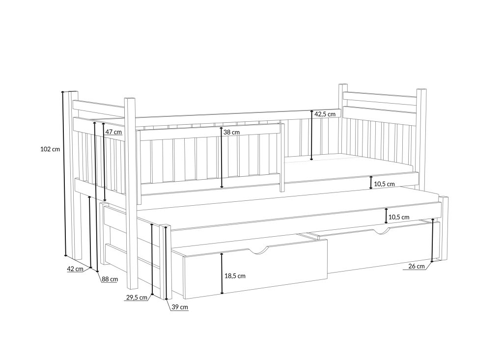 - Konstrukcja łóżka: Drewno sosnowe 100%