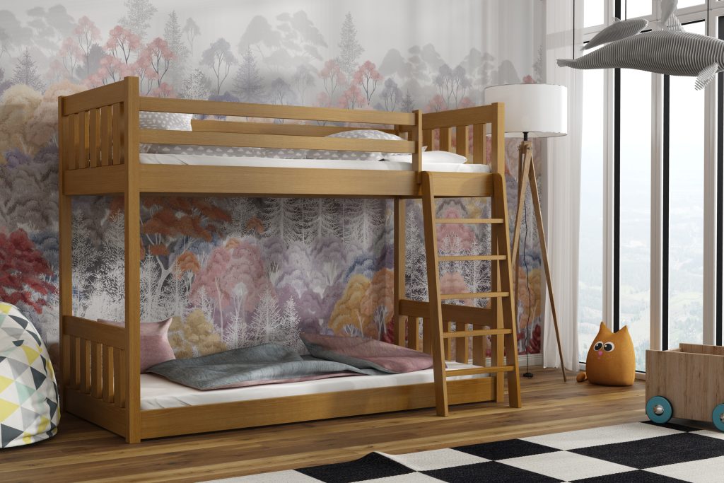 Każde łóżko piętrowe dla dzieci wyposażone jest w solidny stelaż z listew świerkowych, mocowanych bezpośrednio do ramy. W modelach do 180 cm długości znajduje się 14 listew, a w większych – 15. Przemyślana konstrukcja zapewnia sztywność i zapobiega przesuwaniu się poszczególnych elementów.