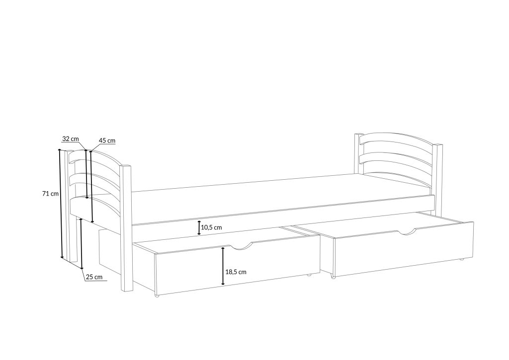 - Konstrukcja łóżka: Drewno sosnowe 100%