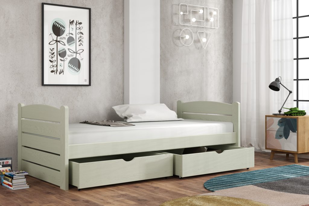Łóżko Ula to subtelne, dziewczęce łóżko pojedyncze z zaokrąglonymi zagłówkami i solidną drewnianą konstrukcją, które zapewnia bezpieczny i komfortowy sen oraz elegancki, minimalistyczny wygląd.